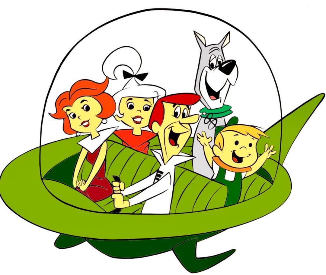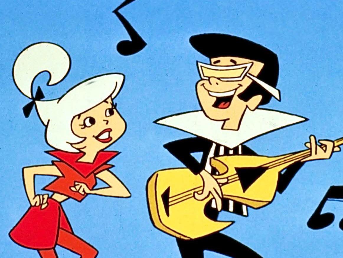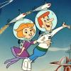 Jetsons: The Movie production animation cels of Jane and George Jetson from Hanna Barbera, 1990.
