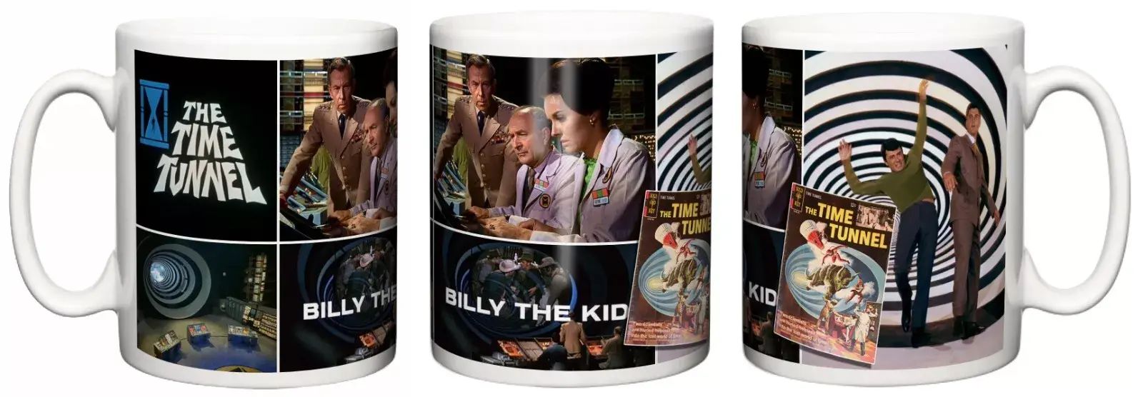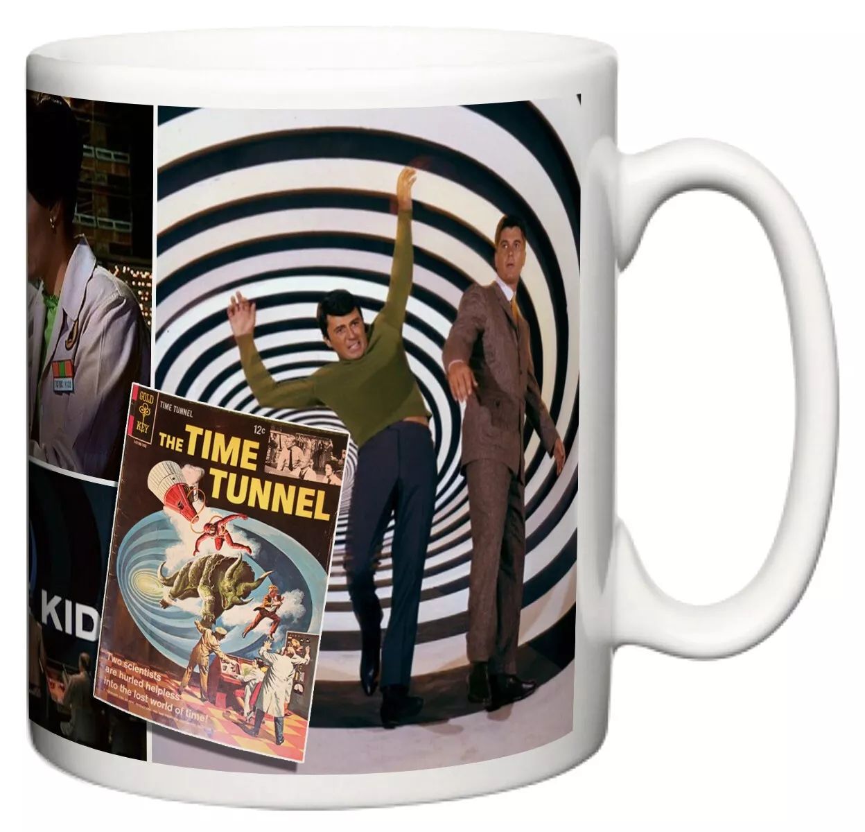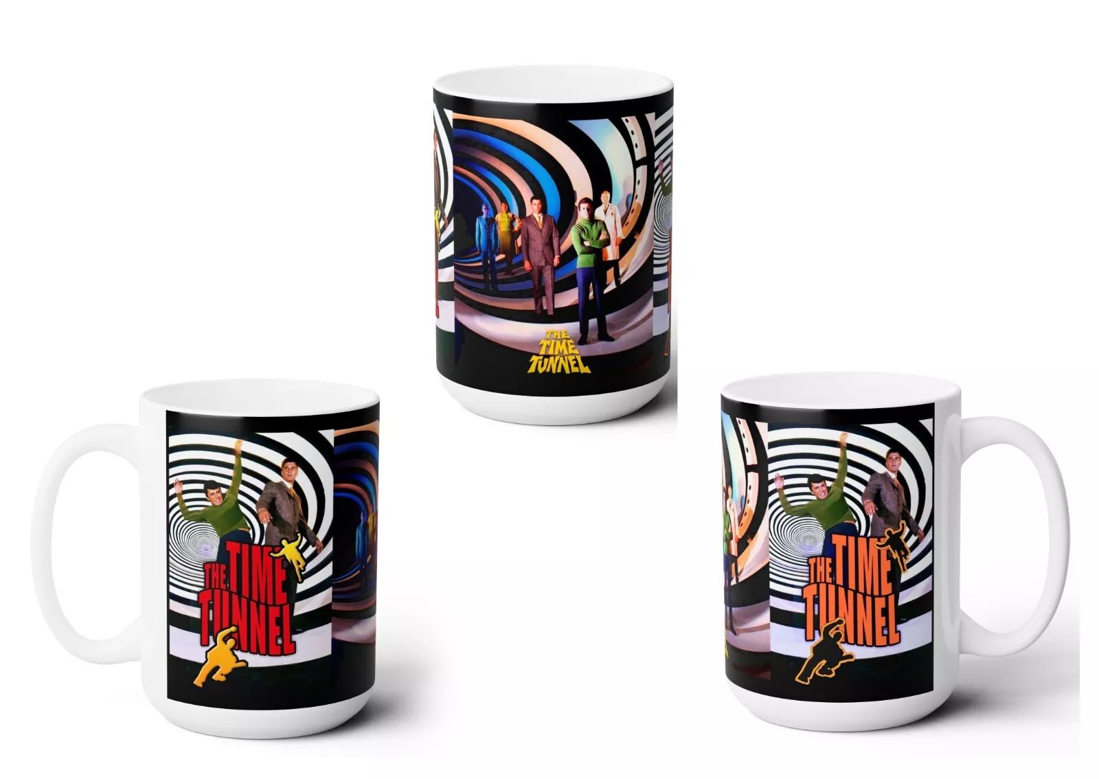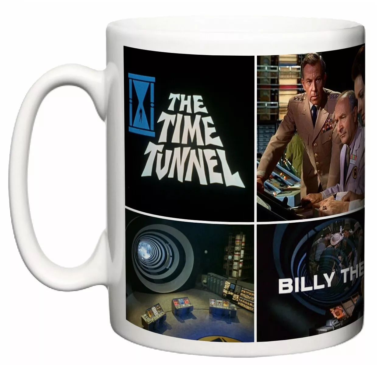 White C-handle Stoneware Coffee mugs with the classic full color 1960's TV show "The Time Tunnel" graphics on both sides of the mug.Value: $10. ( Each )