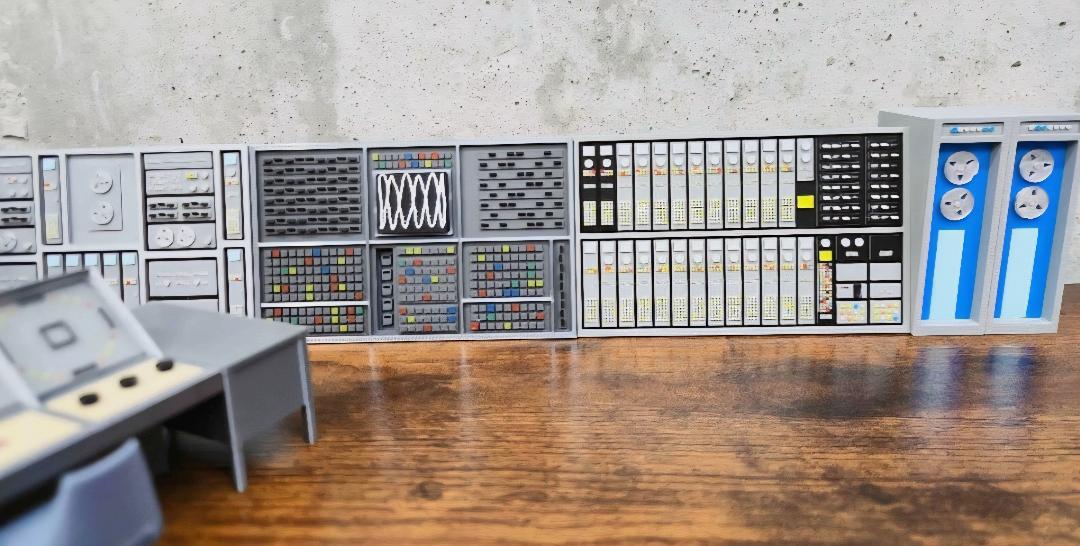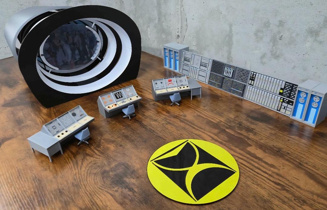I placed clear laser cut acrylic windows over the control desk sections, just like in the original show.