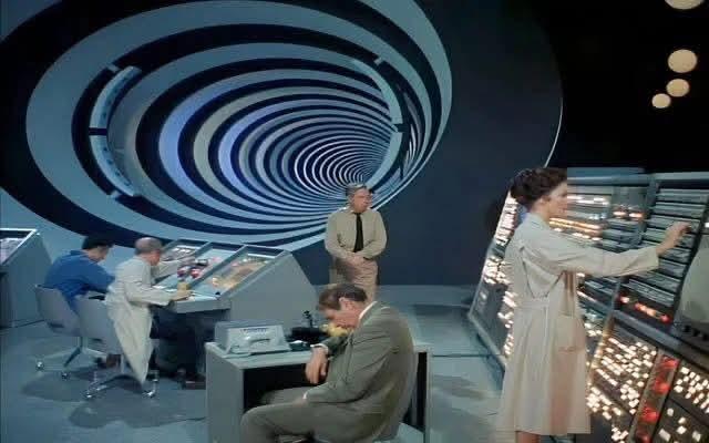 of stuff there," the ABC rep told MacKenzie, pointing out all sorts of pseudoscientific, but believable-looking machines. The pair passed a giant computer tower, "designed like the huge telephone company circuits," ( Or at least what those looked like in 1966 ). "They are real," said the guide, "Those circuits really work. We'd never be able to get fake machines to make those patterns of lights."