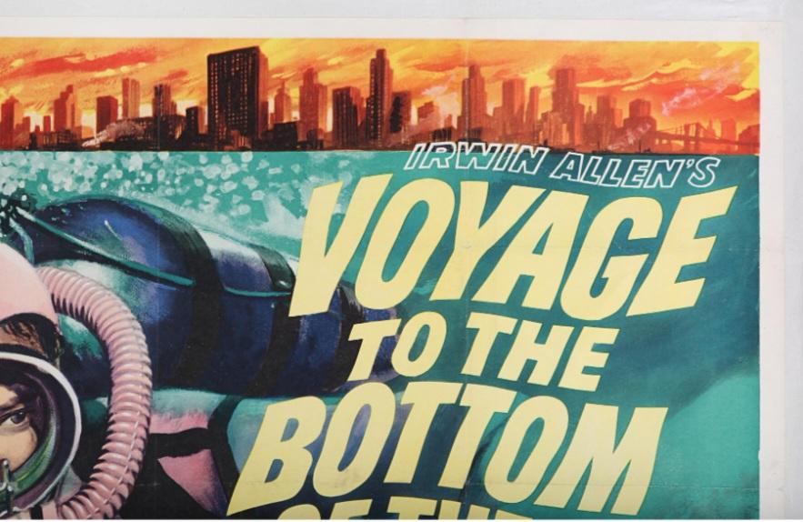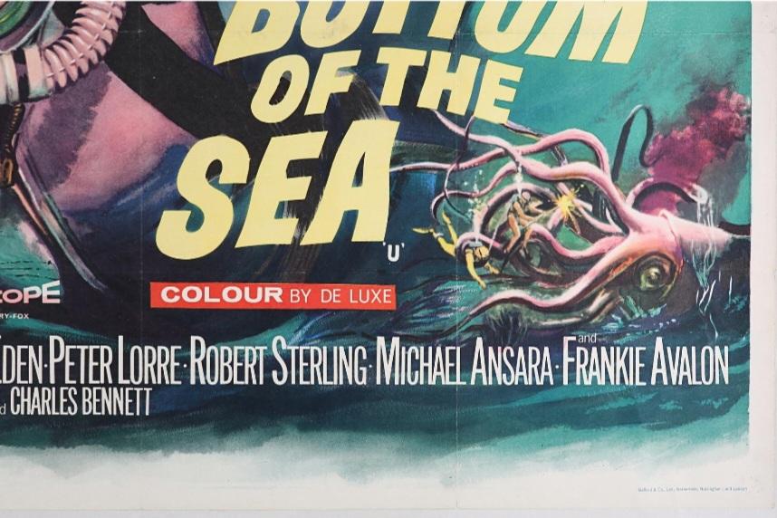 Irwin Allen's Voyage to the Bottom of the Sea ( 1961 ) was a theatrical smash hit that enabled him to go on and produce a series of some of the most memorable sci-fi and fantasy-based shows ever to grace a TV screen, with "Land of the Giants", "Time Tunnel", "Lost in Space" and "Voyage to the Bottom of the Sea" dominating TV schedules into the early 1970s. Offered here is the original painted artwork for the UK Quad by renowned British artist Tom Chantrell, who has produced a marvelous all-action dynamic illustration. Chantrell's artwork adorned posters for classic films, including Hammer productions and Star Wars. The piece comes painted in gouache on an illustration board, with the painted squid and title script being cut-out additions. Also included in the lot is the UK Quad, showing Chantrell's final all-action dynamic artwork. The painted artwork originally came from Chantrell's personal collection and was sold through the official Chantrell Archive.