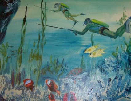 An original 1961 concept painting for the film "Voyage to the Bottom of the Sea". I am unaware of the artist of this painting but I know this was painted in 1961 when the theme development was getting under way for the shooting of the film. The film was produced by Irwin Allen and starred Walter Pidgeon, and Peter Lorre. Later made into a TV series.