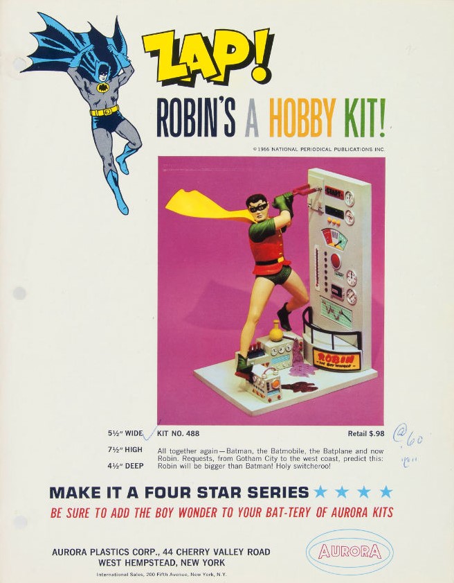 Vintage 1966 Aurora Robin: The Boy Wonder all-plastic model kit #488-98: Great kit from this time period, value still holds well in today's market place.Value: $1,000. ( Sealed )