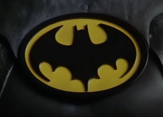 An original Bat Symbol chest insignia prop used on the iconic Batsuit costume worn by Michael Keaton as "Batman / Bruce Wayne" in Batman ( Warner Brothers, 1989 ).