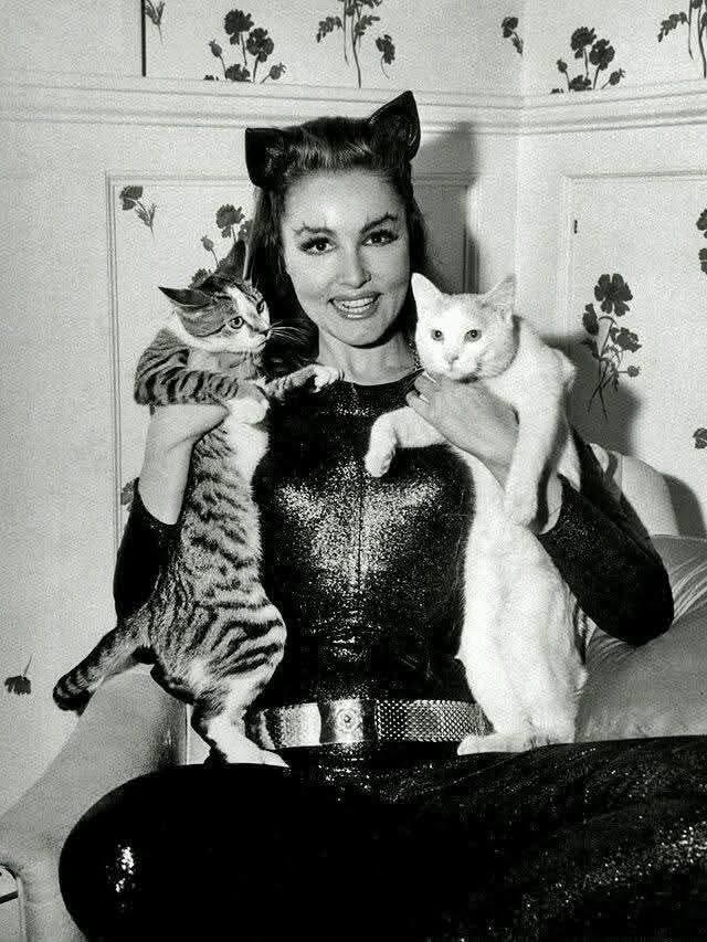 JULIE NEWMAR ( The Catwoman ) is the daughter of one of the original Ziegfield Follies Girls and Julie herself started as a classically trained dancer and the proof is in those long, lovely legs! She made her Broadway debut at age twenty-three and later