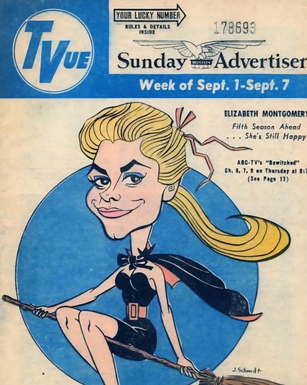 to March 25, 1972. It is about a witch who marries an ordinary mortal man and vows to lead the life of a typical suburban housewife. The show was popular, finishing as the second-rated show in America during its debut season, staying in the top ten for its first three seasons, and ranking in eleventh place for both seasons four and five. The show continues to be seen throughout the world in yndication and on recorded media.