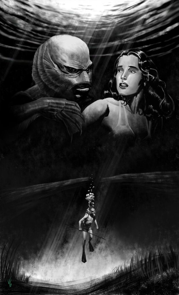 A research team digging in the Amazon comes across the fossilized hand of a human fish creature. That night, the creature emerges from the swamp to kill. So begins one of the more recognizable classics of the science fiction and horror genres. Shot originally in 3-D, this has been a late-night TV hit for decades. The hand makes its way back to the oceanographic institute and soon conscientious scientist David Reed ( Richard Carlson ), greedy scientist Mark ( Richard Cunha ) and the beautiful girl they fight over, Kay ( Julia Adams ) are heading up the Amazon to find more fossils. Instead, of course, they run into the real thing, and terror begins. While Mark and David fight over what to do next, the creature falls in love with Kay, and makes plans of his own. Island diver Ricou Browning plays the creature in the spectacular underwater scenes, the highlight being a beautifully creepy scene of Kay going for a swim, while the smitten creature swims along below her, transfixed. The pounding, horrific score is credited to conductor Joseph Gerhsenson but was actually written by a team of composers, including Henry Mancini.