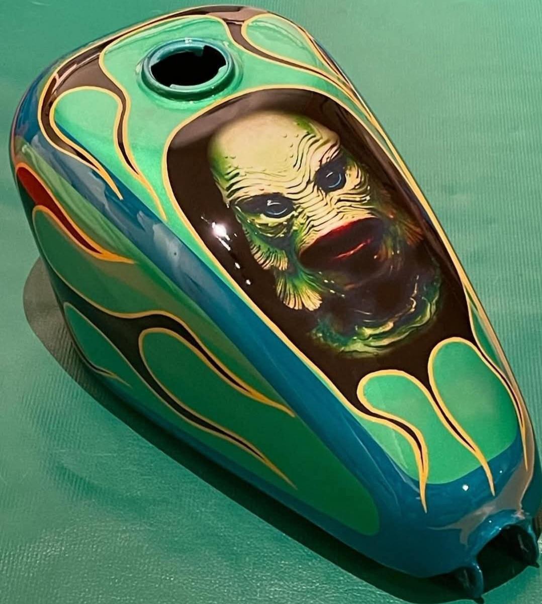 The Creature originally appeared in black and white movies, so there's room to take liberties with the color scheme. And indeed,