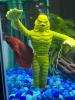 A research team digging in the Amazon comes across the fossilized hand of a human fish creature. That night, the creature emerges from the swamp to kill. So begins one of the more recognizable classics of the science fiction and horror genres. Shot originally in 3-D, this has been a late night TV hit for decades. The hand makes its way back to the oceanographic institute and soon conscientious scientist David Reed ( Richard Carlson ), greedy scientist Mark ( Richard Cunha ) and the beautiful girl they fight over, Kay ( Julia Adams ) are heading up the Amazon to find more fossils. Instead, of course, they run into the real thing, and terror begins. While Mark and David fight over what to do next, the creature falls in love with Kay, and makes plans of his own. Island diver Ricou Browning plays the creature in the spectacular underwater scenes, the highlight being a beautifully creepy scene of Kay going for a swim, while the smitten creature swims along below her, transfixed. The pounding, horrific score is credited to conductor Joseph Gerhsenson but was actually written by a team of composers, including Henry Mancini.