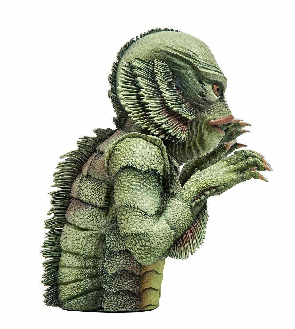 Features an incredibly detailed sculpture of The Gil Man from the Universal cult classic horror Your collectible will come nestled in a double window collectors box with original full color artwork by Robert Sammelin.