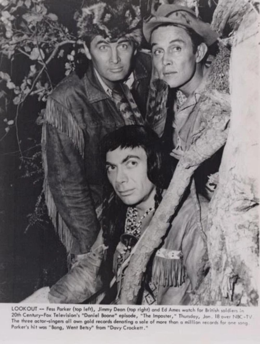 Daniel Boone was one of two significant historical figures played by Fess Parker. He previously appeared as Davy Crockett in a series of episodes of the Walt Disney anthology television series, to considerable acclaim amid the launch of a national craze. For his role as Boone, which lasted much longer, but had far less impact, Parker again wore a coonskin cap, which had been popularized years earlier by the Crockett shows. Daniel Boone's headgear was even mentioned in the show's theme song: "From the coonskin cap on the top of ol' Dan....". Efforts had been made to secure the rights to Crockett from Walt Disney, but Disney refused to sell, so the series wound up being about Boone instead.