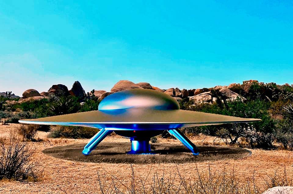 The saucer has a lenticular profile. Above there is a dome, approximately a third of the diameter of the lens. Below there is a