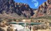 The studio created a stage set of the interior command and mezzanine decks and a 60-foot ( 18 m ) semicircular mock-up of the landed saucer's lower half ( With the deployed central landing pedestal, gangway, and conveyor ramps ). The sets suggest that the starship is somewhere between 100 feet ( 30 m ) and 175 feet ( 53 m ) feet in diameter.