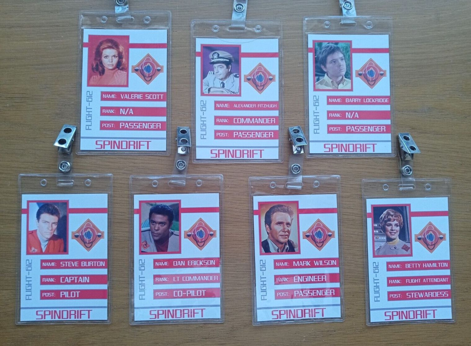 Land of the Giants Crew Clip-on ID Photo Pass Badge Set Prop Collection. Complete set of all 7 Spindrift passengers. |