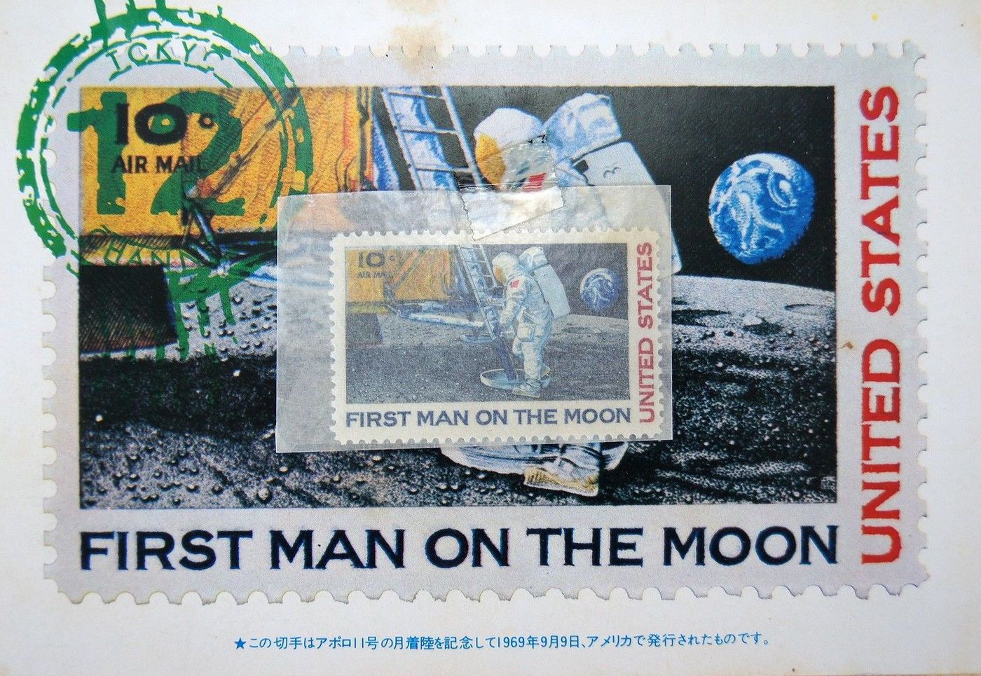 Neil Armstrong, "First Man on the Moon" USA postal stamp with stamp holder. At present, this stamp set hardly remains anywhere!!!