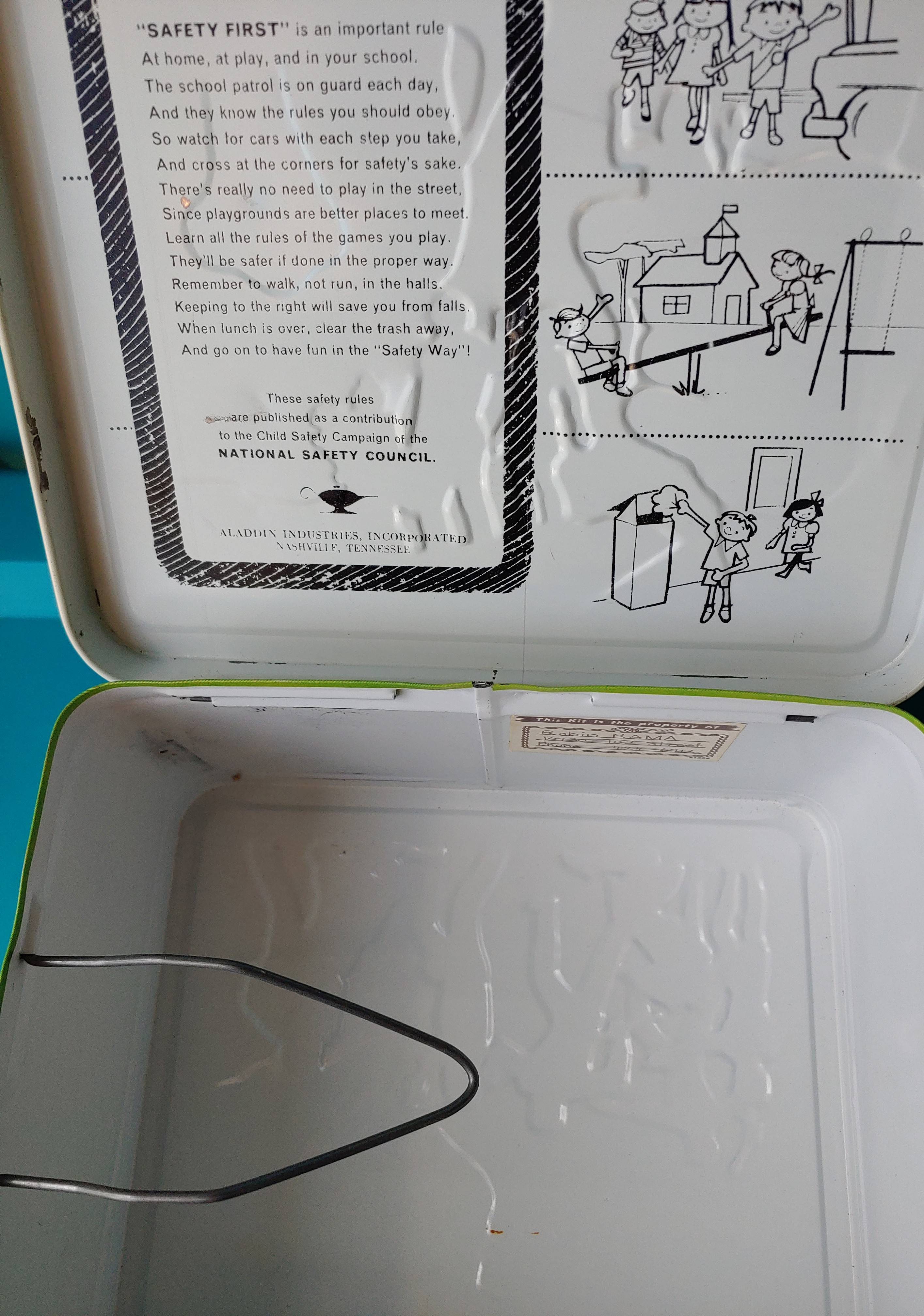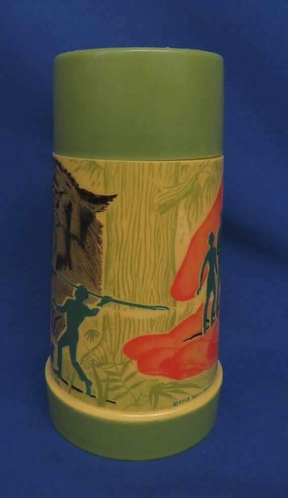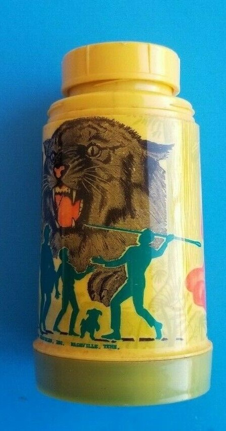 Would you believe the giant on the box is actually Elmer Lehnhardt, the artist of the box? He was the art director at Aladdin in the 60's and 70's, and thought it would be funny to add his self-portrait to this box. He died in 1985.
