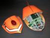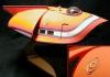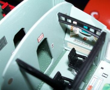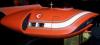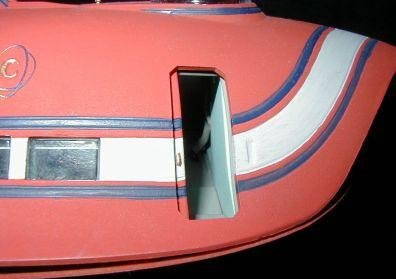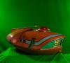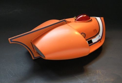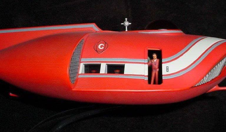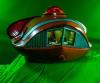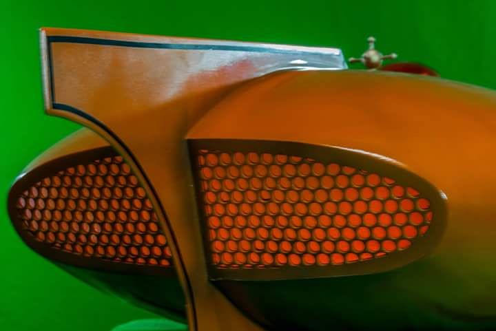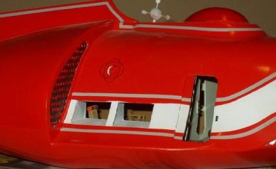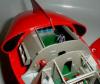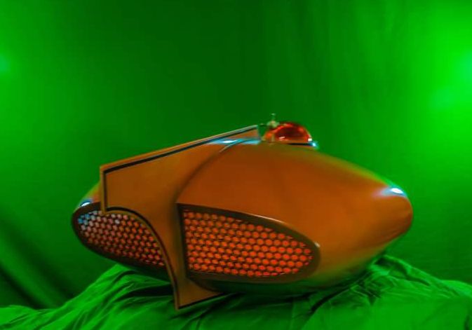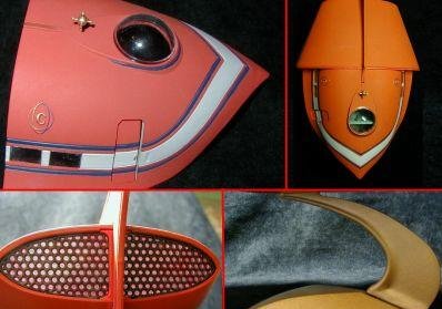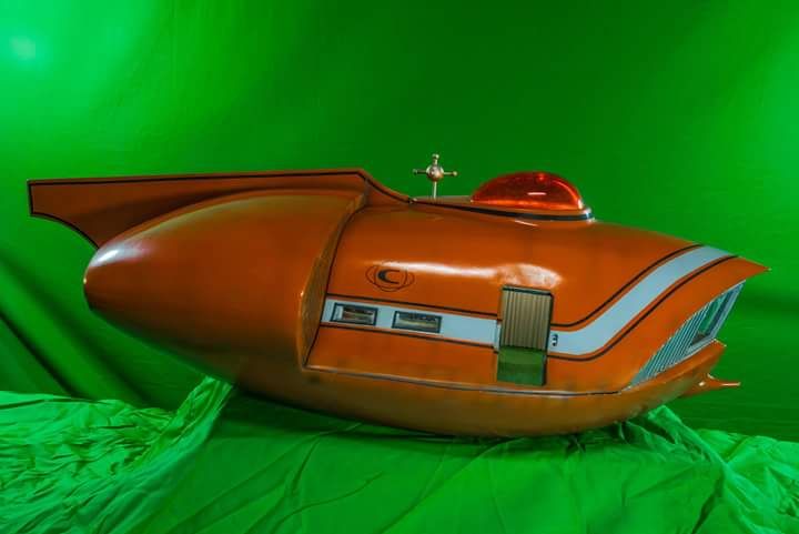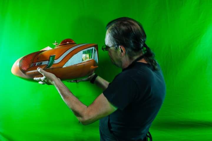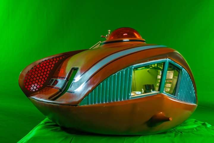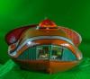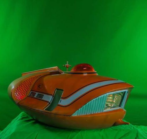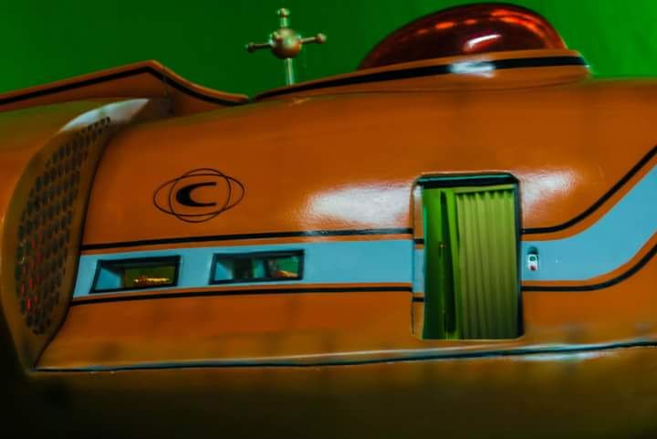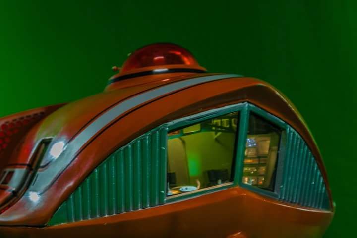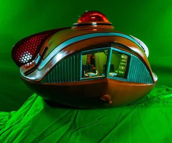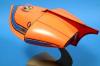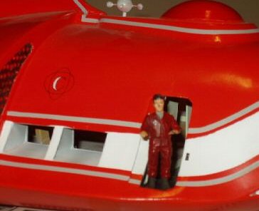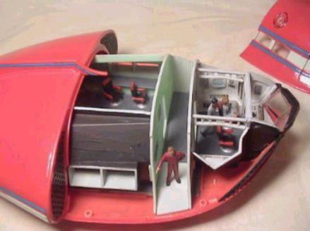 This second set of photo's is yet another original Aurora kit from Land of the Giants, this is the classic spindrift space ship from the 60's TV series by Irwin Allen. Highly atmosphic model completely hand built. The model length is approx. 10 inches long by 6 inches wide. This model has been weighed down to make this feel like a quality model. Now weighs over 300 grams. This now gives the model a quality feel to it. The colors are vibrant, painted in matt red, with dark grey and light grey stripes, gold and dark grey logos and gold color antenna's at the top and bottom. Also has a gold stand. Front section is removable and has a sliding door that works well. Once the hood is removed, this reveals a highly detailed cock pit and passenger cabin. In the cockpit there are 2 male pilots and 1 female stewardess.