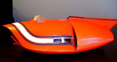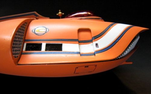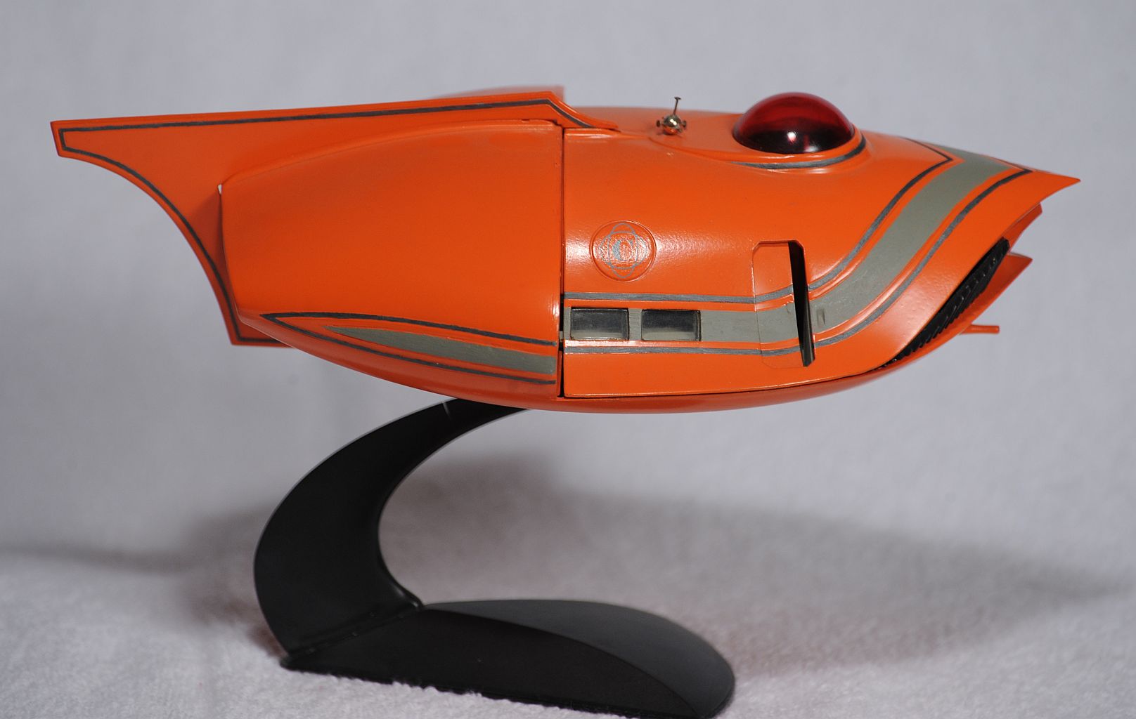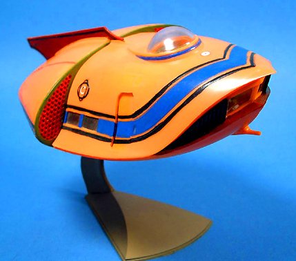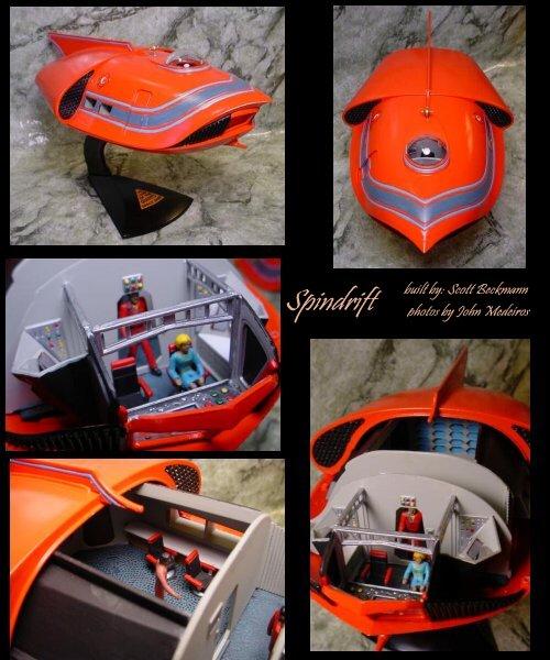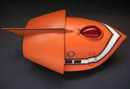Issued by Aurora in 1968 and sold for $1.50. The "Rocket Transport Spindrift" comes with a removable fuselage & crew member figures. The ship comes in a orange exterior, & green interior with decals. These rare kits built-up still hold there values in today's market.