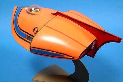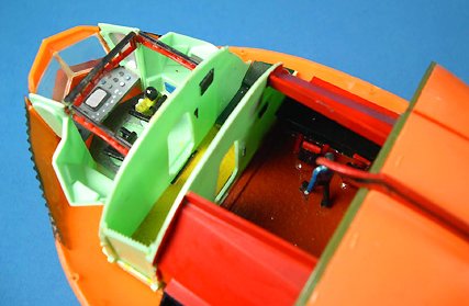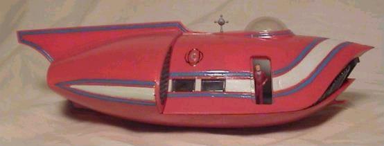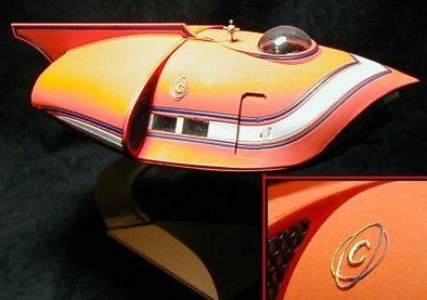 The New updated photos were submitted on 1/28/04. Again Another Polar Lights reissue of the classic spaceship Spindrift from the Irwin Allen series "Land Of The Giants". The kit comes with a removable top to display the fully detailed interior. I have airbrushed the model with accurate colors and hand brushed the smaller details. This has always been one of my favorite sci-fi spaceship designs, Irwin Allen always had great vehicles in his shows.