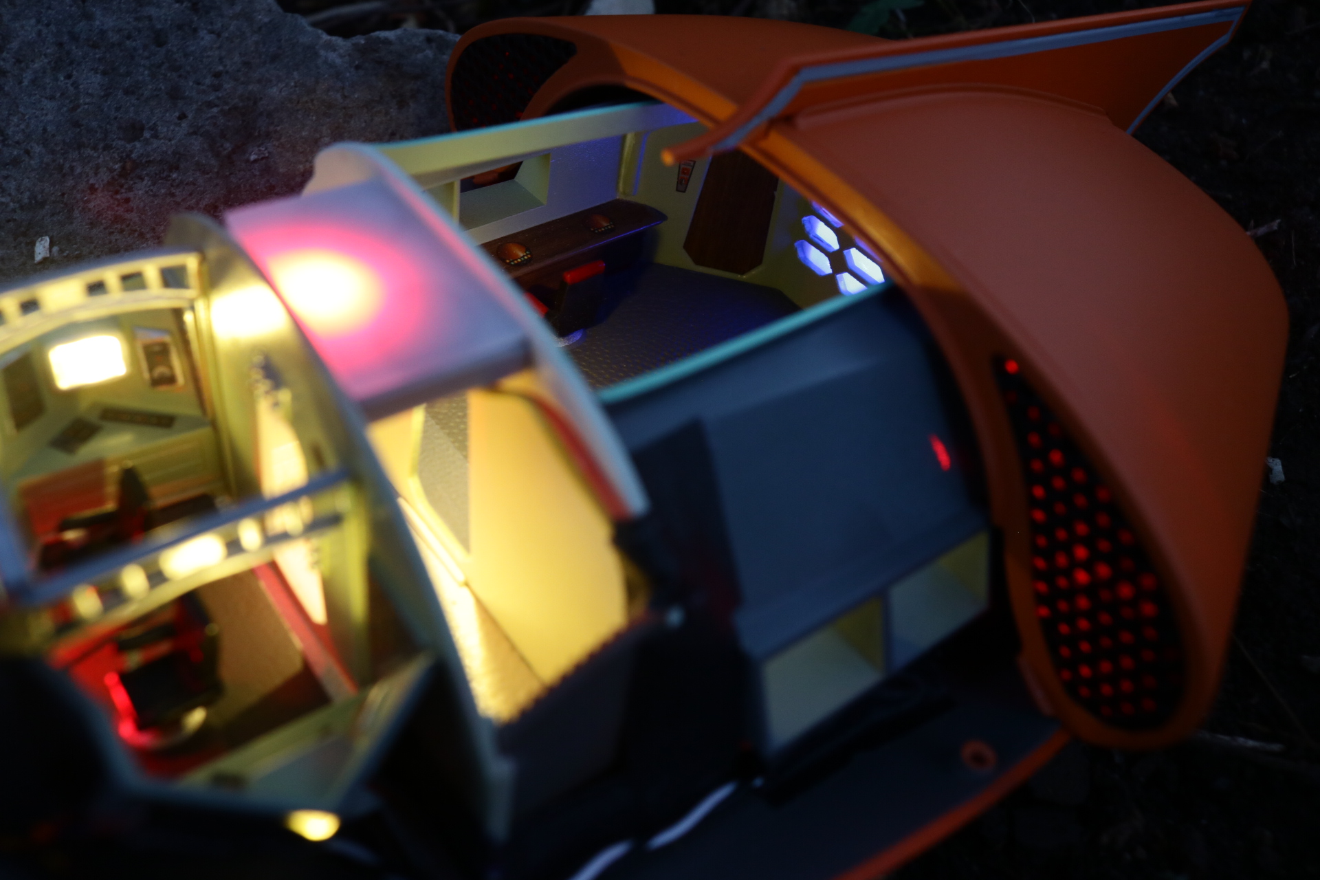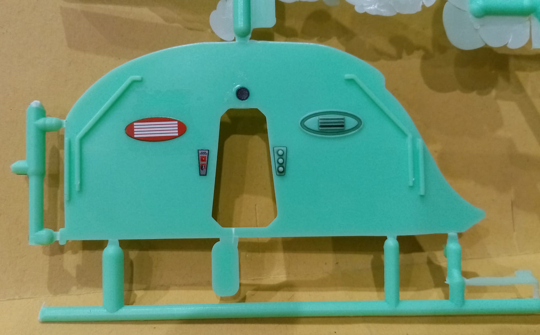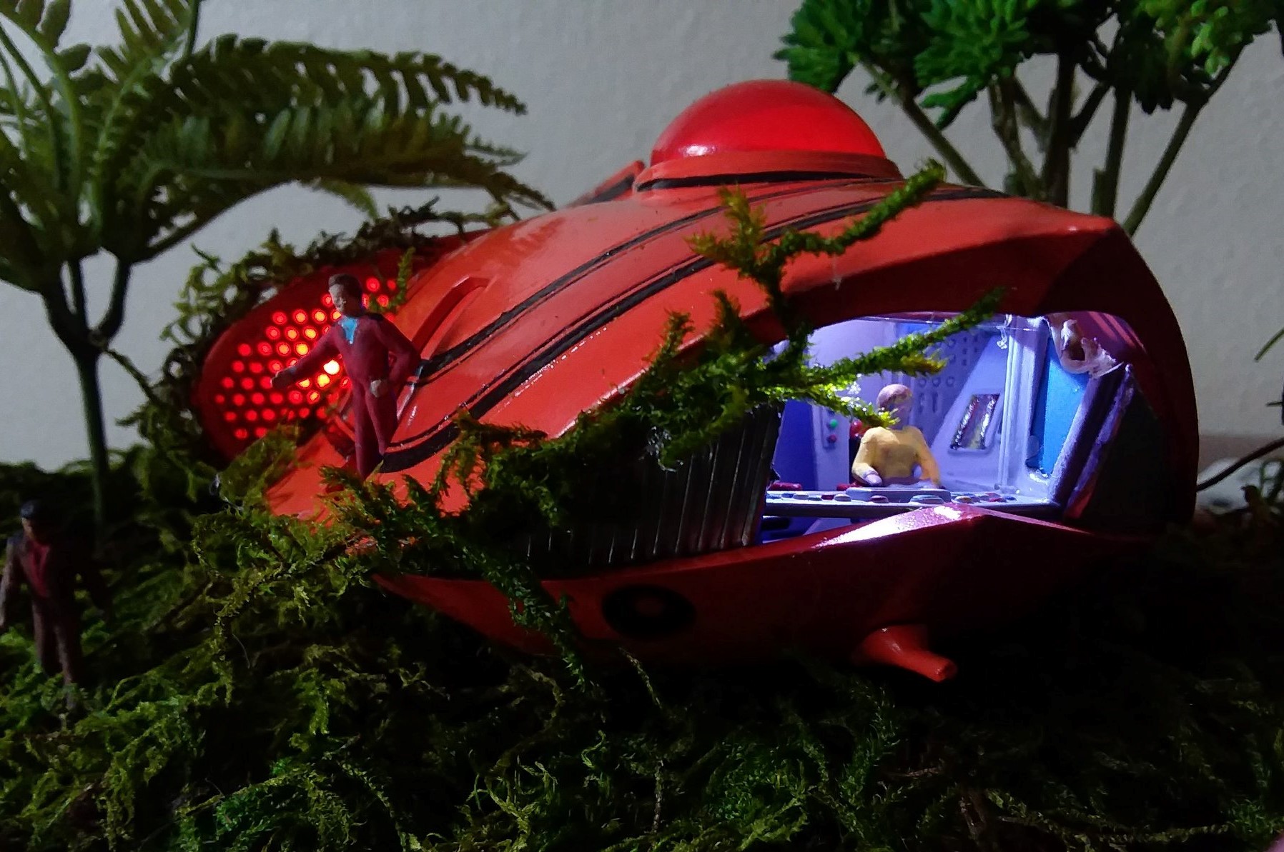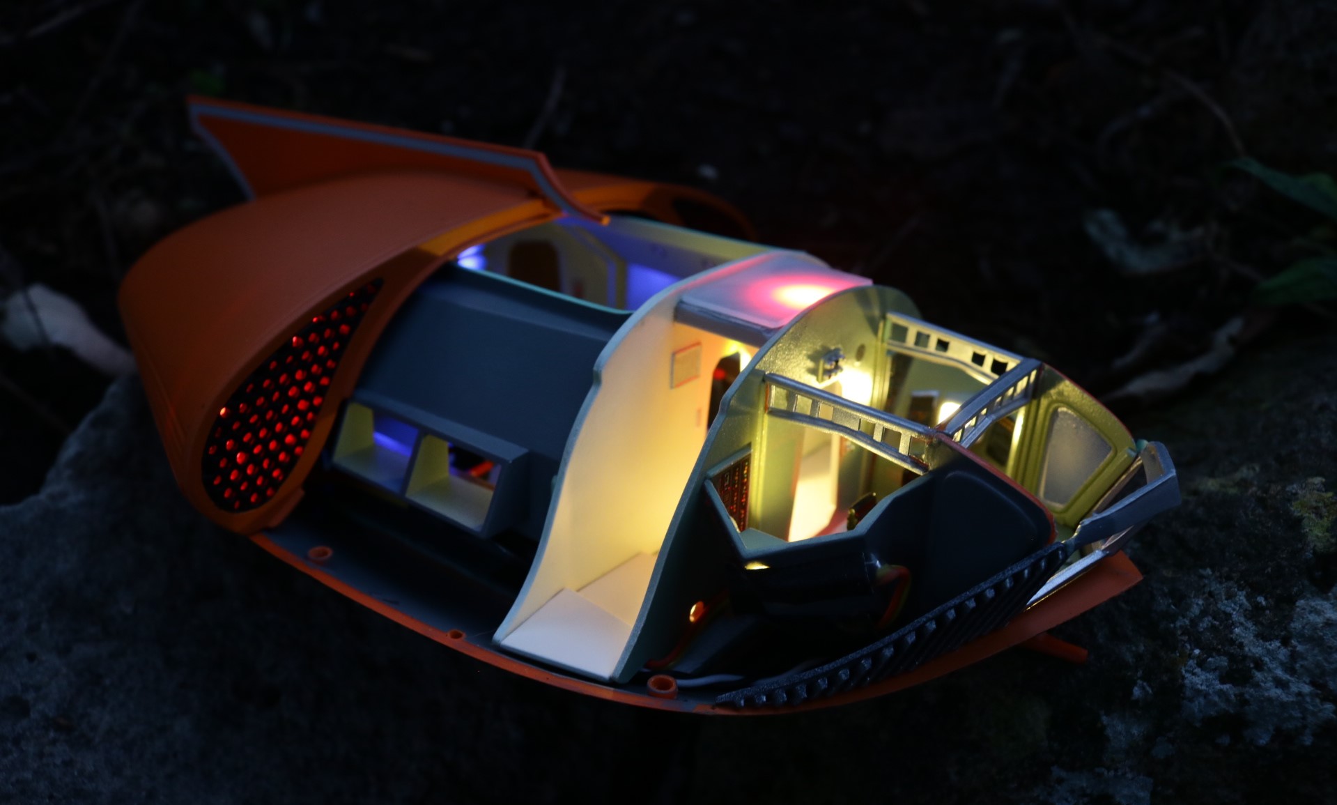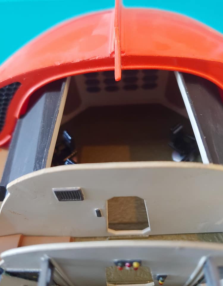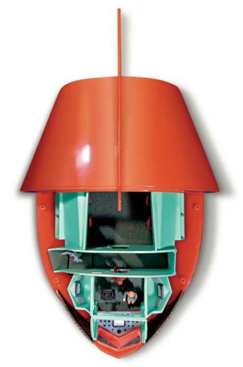 Painting is simple and very, very '60s: bright orange outside, vile green inside. Adequate instructions for this, as well as the crew's uniforms, are provided on the instruction sheet.