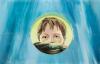 the Land of the Giants in oil paint with varnish, measuring 20" x 30" on 4-ply artist board, glue tipped to a mat measuring 23" x 32" and hinged with transparent mylar overlay. The pre-production artwork depicts the "Spindrift" crew cradled by a menacing child. A second artwork of a giant child gazing through a porthole in oil paint with varnish, indented to 18" x 28", measuring 20" x 30" on 4-ply artist board, glue tipped to a mat measuring 22" x 32" and hinged with transparent mylar overlay. Actual artwork reproduced on page 300 of "The Fantasy Worlds of Irwin Allen" by Jeff Bond, Creature Features 2019.