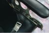seat from a U.S. Air Force fighter, which has been modified with custom aluminum side accents and black leather upholstered arm