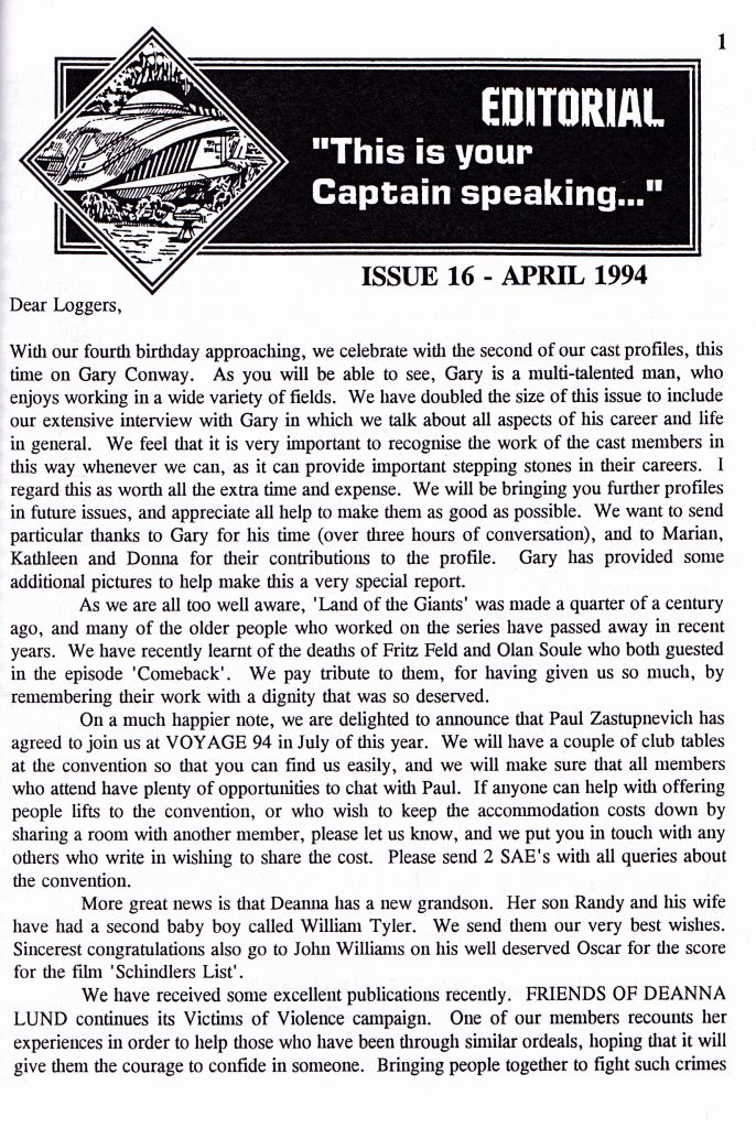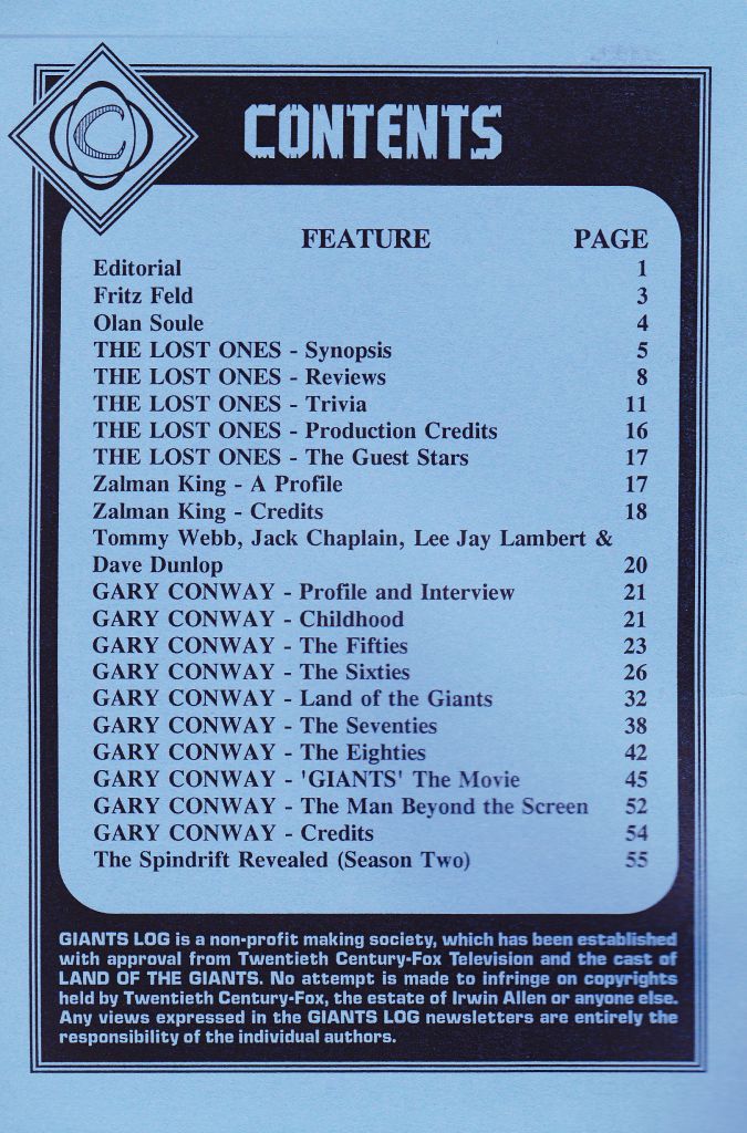 This is the 16th issue of the Newsletter of the fan club of the Irwin Allen series, Land of the Giants. It is A5 size & contains articles & information any fan would be interested in. This edition has 60 pages.Value: $20.