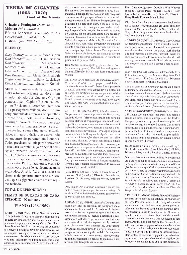 From the classic TV series, "Land of the Giants". This TV Magazine was issued in 1997 in Brazil. Cover features Deanna Lund & Gary Conway.Value: $30.