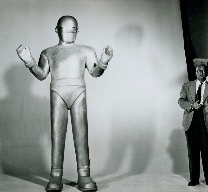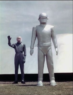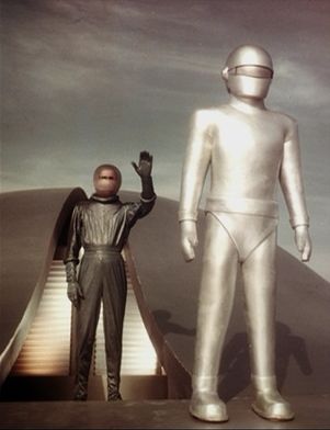 I am leaving soon, and you will forgive me if I speak bluntly. The universe grows smaller every day, and the threat of aggression by any group, anywhere, can no longer be tolerated. There must be security for all or no one is secure. Now, this does not mean giving up any freedom except the freedom to act irresponsibly. Your ancestors knew this when they made laws to govern themselves and hired policemen to enforce them. We of the other planets have long accepted this principle. We have an organization for the mutual protection of all planets and for the complete elimination of aggression. The test of any such higher authority is, of course, the police force that supports it. For our policemen, we created a race of robots. Their function is to patrol the planets in space ships like this one and preserve the peace. In matters of aggression, we have given them absolute power over us; this power can not be revoked. At the first sign of violence, they act automatically against the aggressor. The penalty for provoking their action is too terrible to risk. The result is that we live in peace, without arms or armies, secure in the knowledge that we are free from aggression and war free to pursue more profitable enterprises. Now, we do not pretend to have achieved perfection, but we do have a system, and it works. I came here to give you these facts. It is no concern of ours how you run your own planet. But if you threaten to extend your violence, this Earth of yours will be reduced to a burned-out cinder. Your choice is simple: Join us and live in peace, or pursue your present course and face obliteration. We shall be waiting for your answer; the decision rests with you.