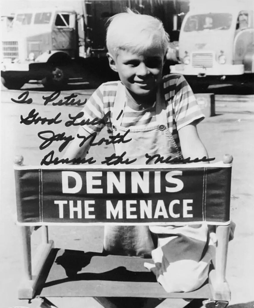 Jay Waverly North Jr. ( August 3, 1951 to April 6, 2025 ) was an American actor. His career as a child actor began in the late 1950s with roles in eight TV series, two variety shows, and three feature films. At age 7, he became a household name for his role as the good natured but mischievous Dennis Mitchell on the CBS situation comedy Dennis the Menace ( 1959 to 1963 ), based on the comic strip created by Hank Ketcham.