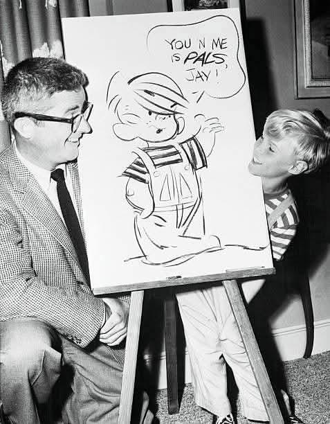 Dennis the Menace premiered on CBS on Sunday, October 4, 1959, and quickly became a hit with audiences. North was paid US $500 ( Equivalent to about $5,400 in 2024 ) per episode, his strawberry red hair was bleached platinum blonde for the role, and the 8 year old was instructed to "shave" a year off his age when speaking with the press. His mother continued to work at AFTRA full-time, and hired business managers to invest his earnings. In a 1993 interview with Film Fax magazine, North spoke highly of his mother, saying: "I want to make it very clear about one thing. I never supported my mother during Dennis the Menace. She earned her own money from AFTRA. She never lived off my earnings. I know that sometimes happens with child actors, but it was not true in my situation."