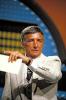 Dawson parodied his TV persona in 1987's The Running Man opposite Arnold Schwarzenegger, portraying the evil, egotistical game-show host Damon Killian. Dawson received rave reviews for his performance. Film critic Roger Ebert ( Who gave the film a thumbs down ) wrote, "Playing a character who always seems three-quarters drunk, he chain-smokes his way through backstage planning sessions and then pops up in front of the cameras as a cauldron of false jollity. Working the audience, milking the laughs and the tears, he is not really much different from most genuine game-show hostsâ€"and that's the film's private joke".