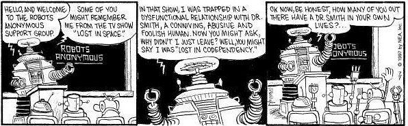 These comic strips was issued in several newspapers several years ago. It's nice to know that someone out there still remembers our shows, and having fun with it as well! Many articles and photos have been released over the years, specially those making fun of Dr. Smith and the Robot.