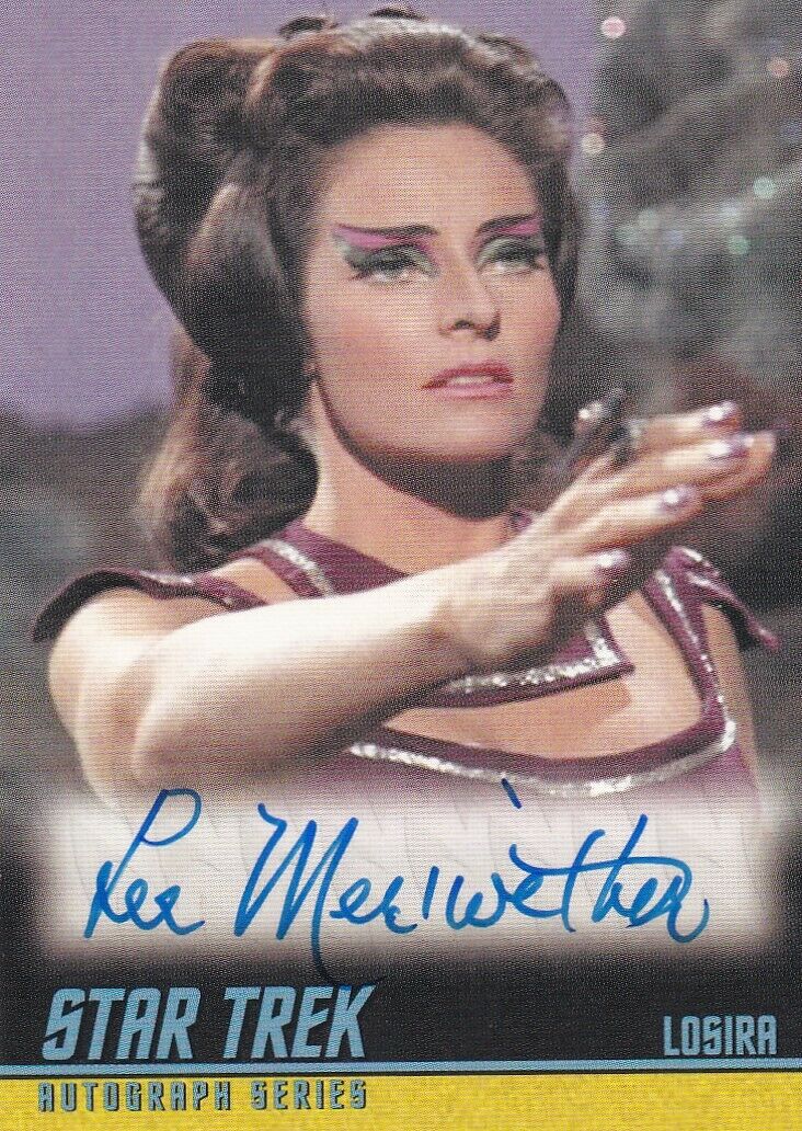 A series of different trading cards signed by actress, "Lee Meriwether" from The Time Tunnel, Star Trek, and Batman TV series.Value: $40. ( Each )
