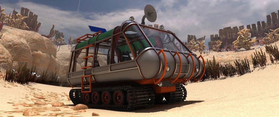 The Lost in Space television series ( 1965-68 ) imagined an overcrowded Earth in 1997, with humans sent to space to colonize other planets. The show featured the Robinson family looking for a suitable earth-like home near Alpha Centauri, and their Jupiter-2 spacecraft contained an amazing tracked chariot. Their overland journeys on far-flung planets left an indelible impression on fans