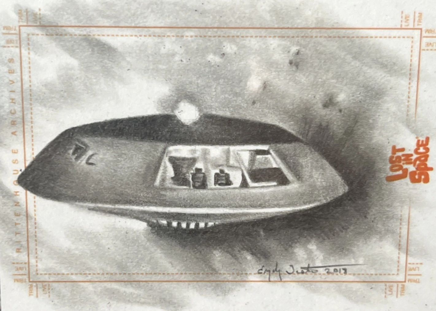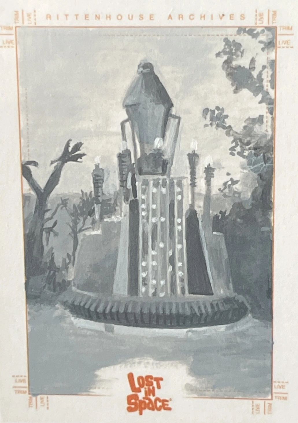 Featured here are original Lost in Space sketch cards done by a vary of different artist. Concept art considered for past and future trading cards issued by the Rittenhouse trading card company. Many of these never got past the early stages and were saved and sold by the artist on eBay. Cards very in value depending on the topic matter and the work done within the card it self.