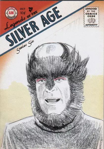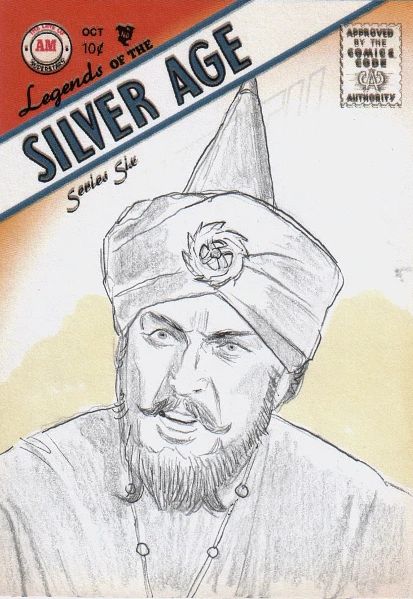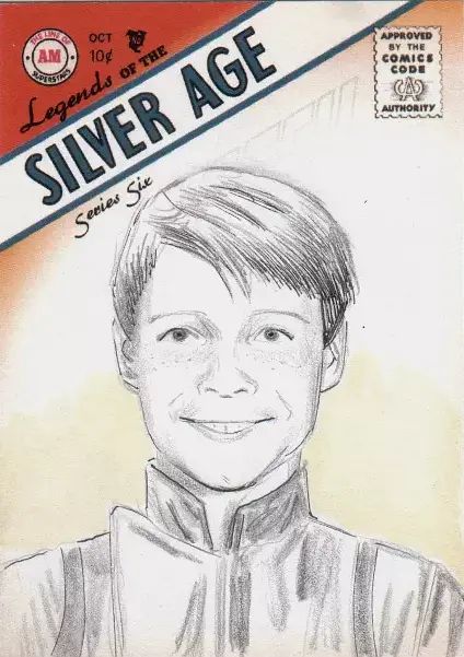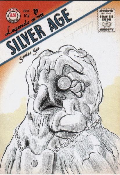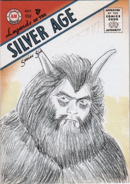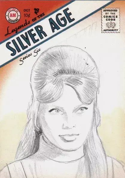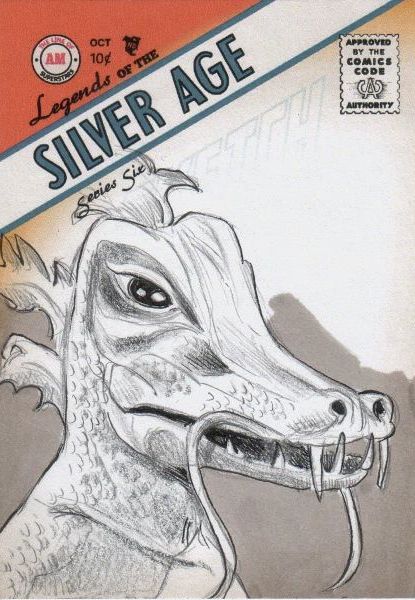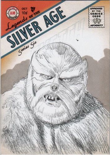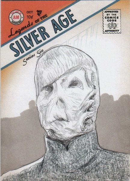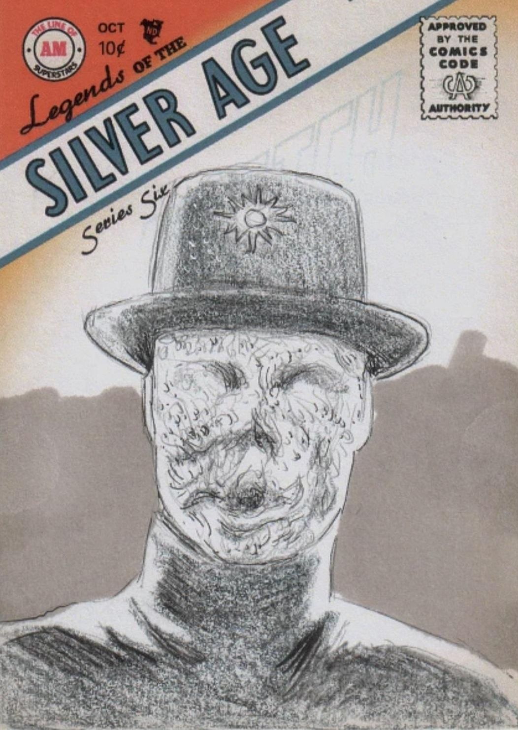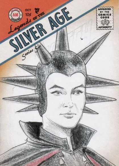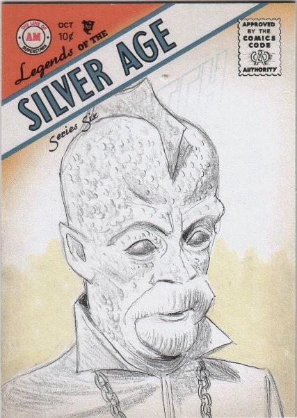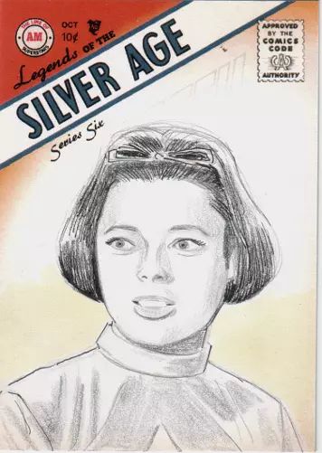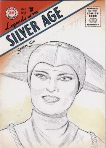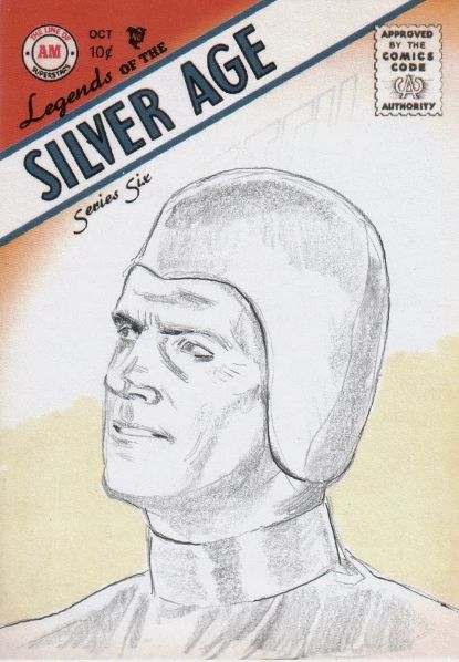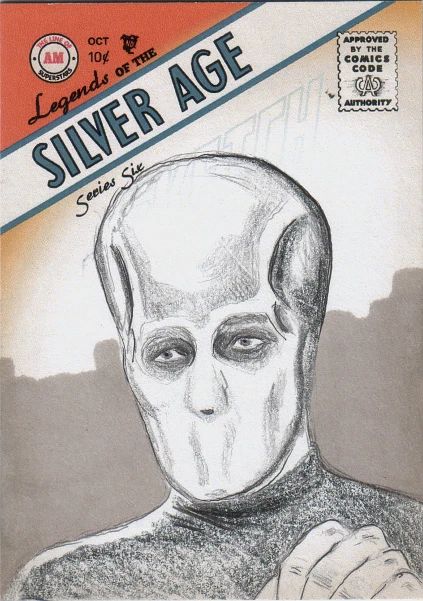 From Acheron Mint's Legends of the Silver Age Sketch Collection, feat Legends of Silver Age Comics Ink and Prismacolor on 2 x 3 inch card stock. Lightfast and acid-free, will not fade with age. This is an original hand drawn sketch and not a print, numbered on reverse. Classic retro era design based on Silver Age DC's.