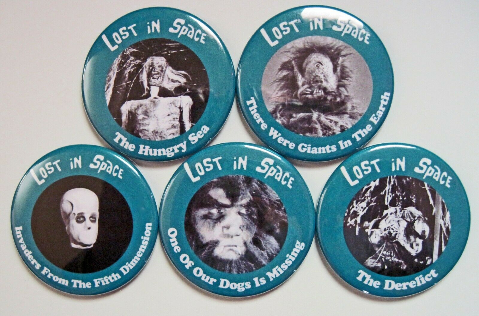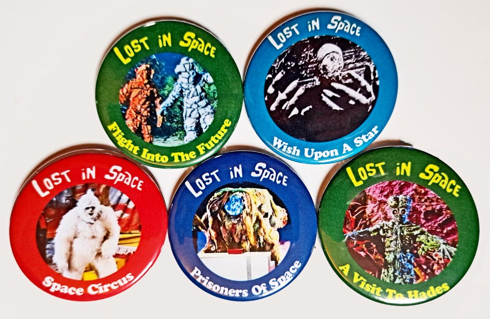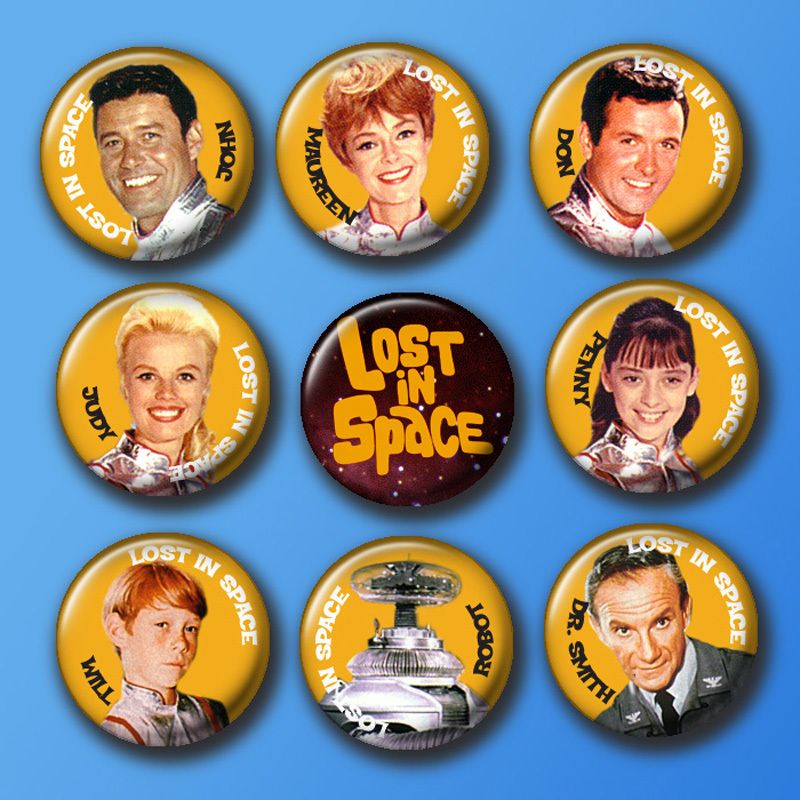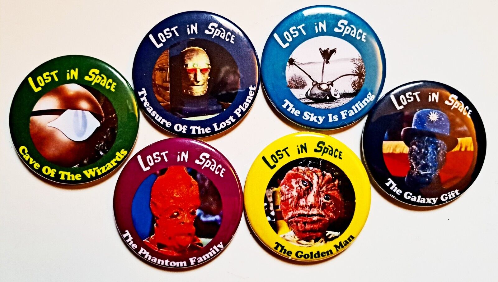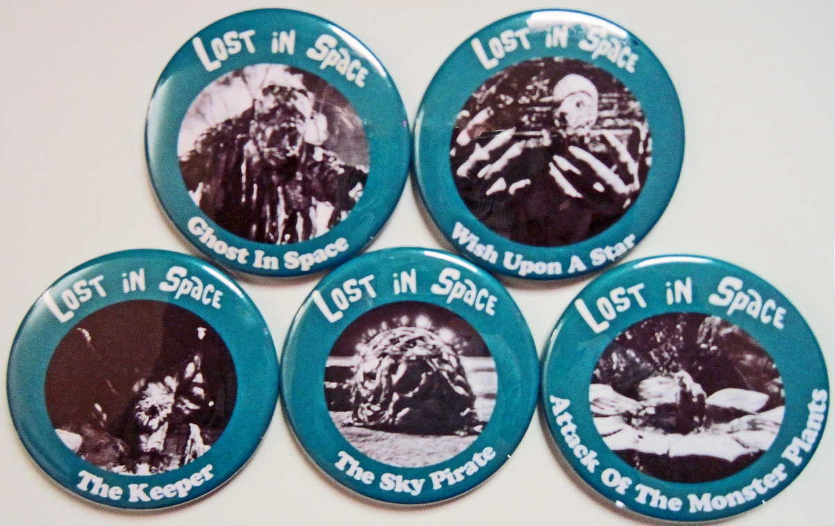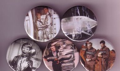 What wasn't made in the 1960's is being made today by great fans. A series of hand made pins from the classic TV series, Lost in Space. Many different versions of our loved characters are featured & ready to wear. I framed these and are a great conversation piece. I purchase these and many others on July 8, 1998 from Dean Trudeau of Glendale, Arizona. "Many thanks Dean for all my special request, and one-of-a-kind buttons!" For those interested on purchasing any special buttons you can contact Dean by his e-mail at