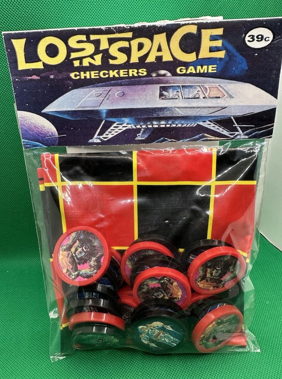 From my personal inventory custom made, fan produced, limited edition collector tribute piece. The Lost in Space Checkers Set Dime Store Retro Rack Toy. A total of 24 checkers with a foldable plastic board, mint sealed Item. Packaged bagged with header card. This makes a great addition to any Collection.