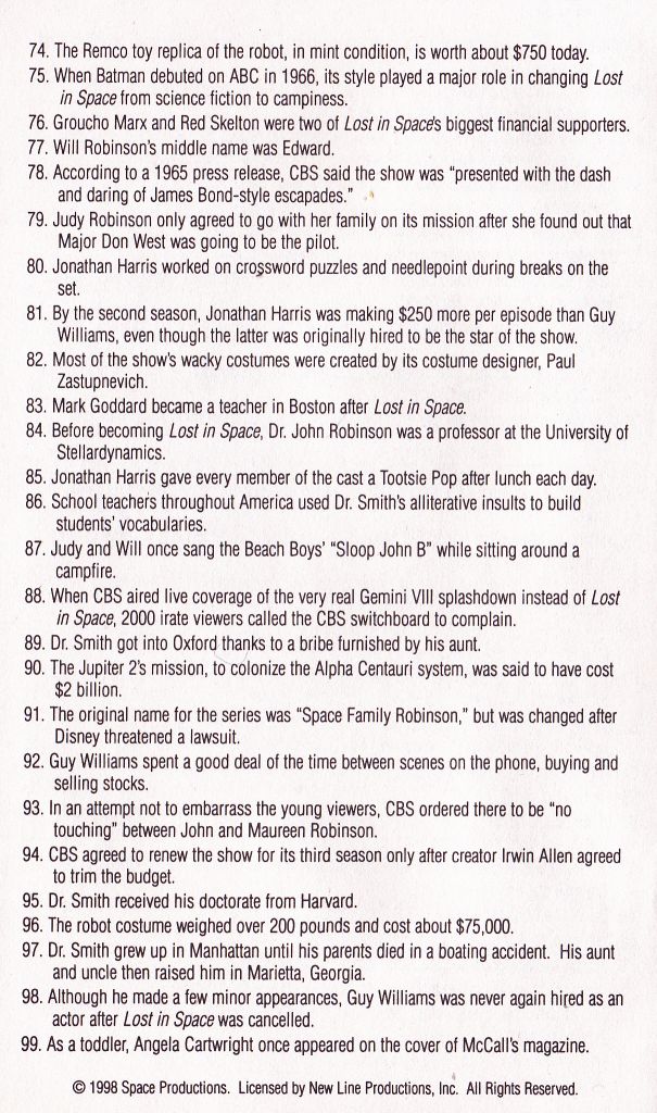 Issued by the African country "Togo" in 1998. For the 1st time ever 9 official postage stamps honoring the original LIS cast from the 1965 TV series. These were very limited, and will be a true collectors item in the years ahead.Value: $60. ( Set )