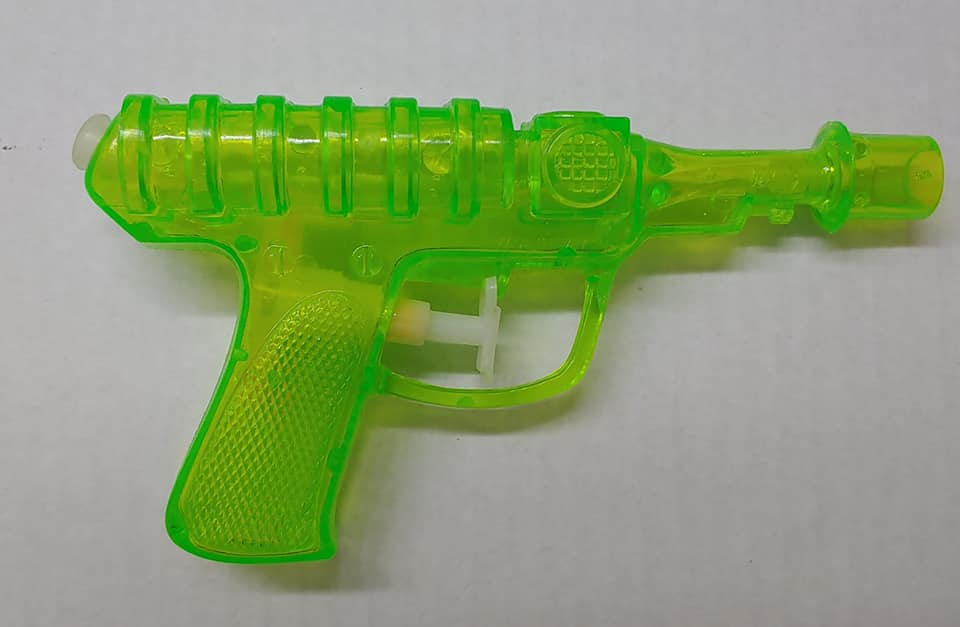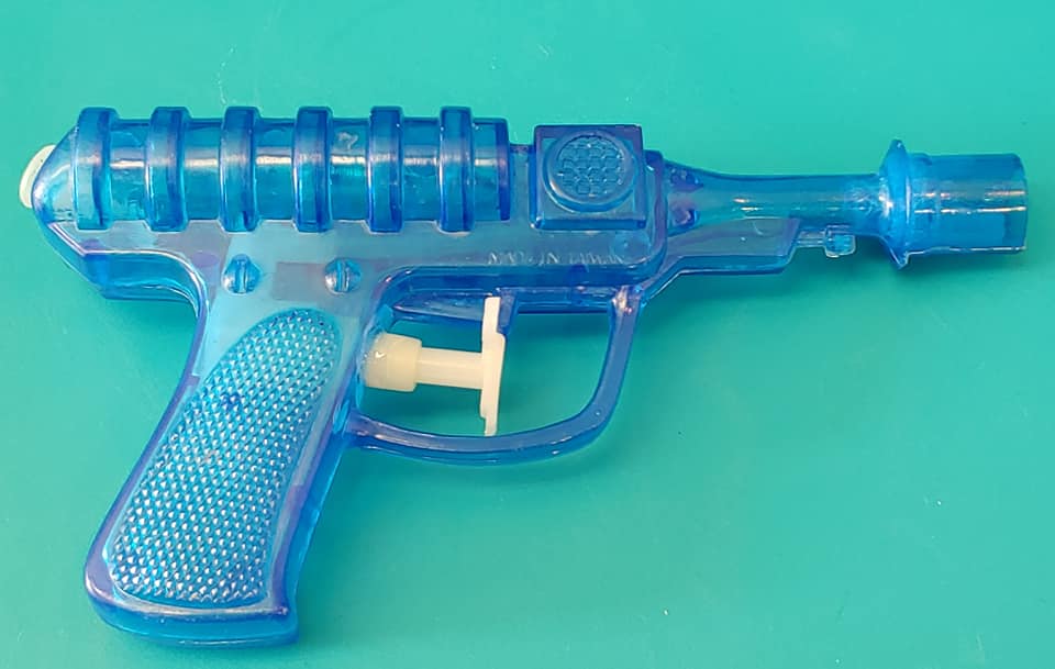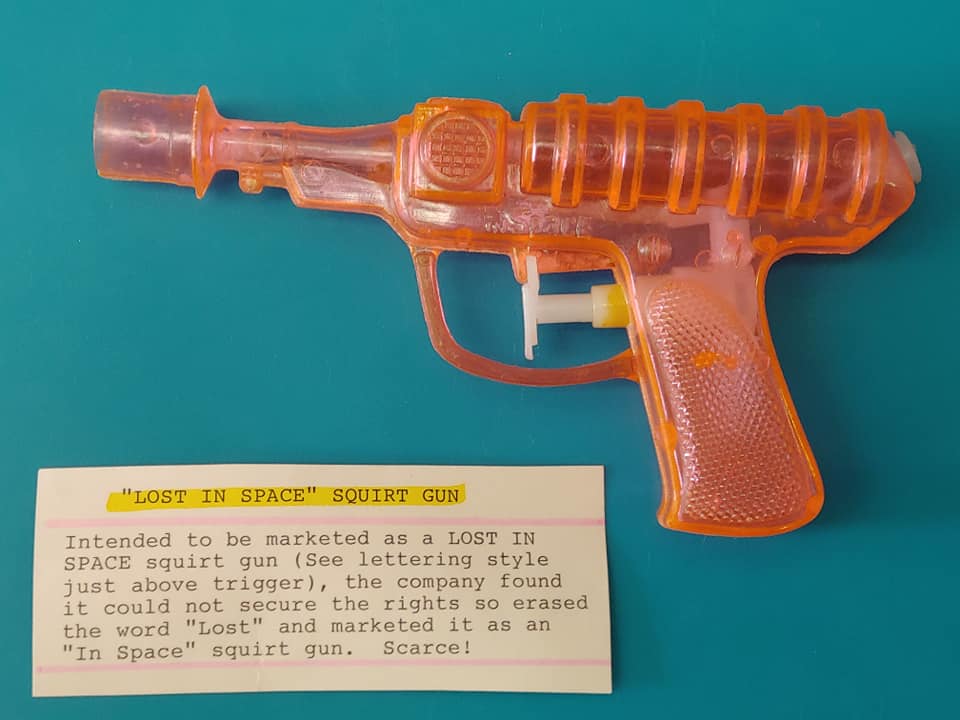Issued in 1977 and was marketed without copy right permission. The company reissued the item filing OFF the word "LOST" on the gun. There were four ( 4 ) different colors issued on this toy. Colors being, red, blue, green, and yellow.Value: $200. ( Each )