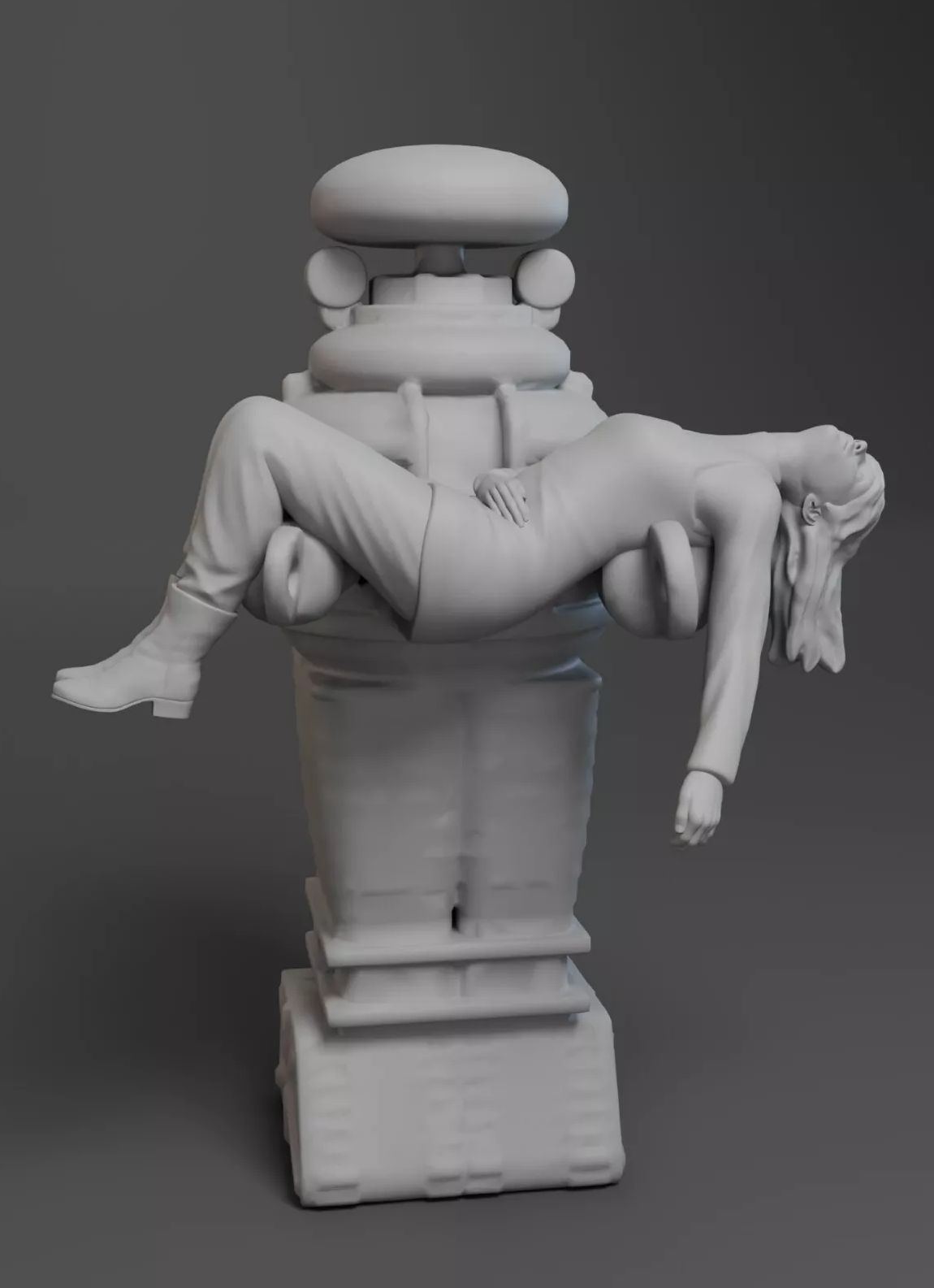 Lost in Space Robot B-9 carrying an injured Judy Robinson. Stands 3 inches tall, 3D printed in a white resin plastic. |