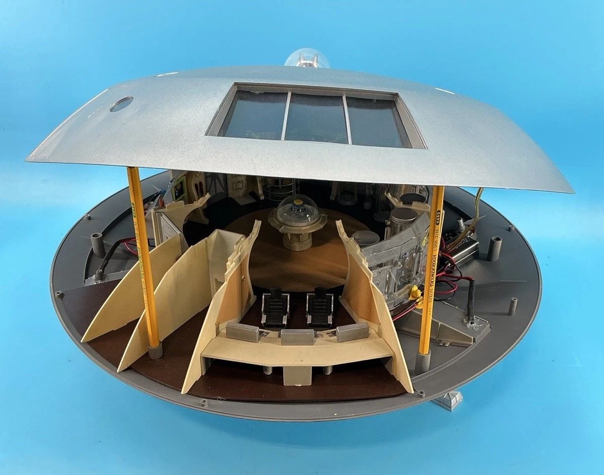 The Jupiter-2 model from Lost in Space, featuring battery-powered lights, is a small collectible item released in 2020 by Memories Renewed. This officially licensed replica is inspired by the iconic spacecraft from the science fiction and horror genre, hailing from the United States. Perfect for fans of the Lost in Space franchise, this detailed model is sure to captivate collectors and enthusiasts alike with its retro design and functional lights.