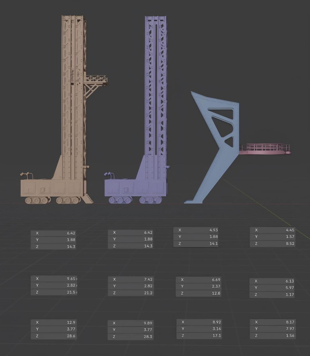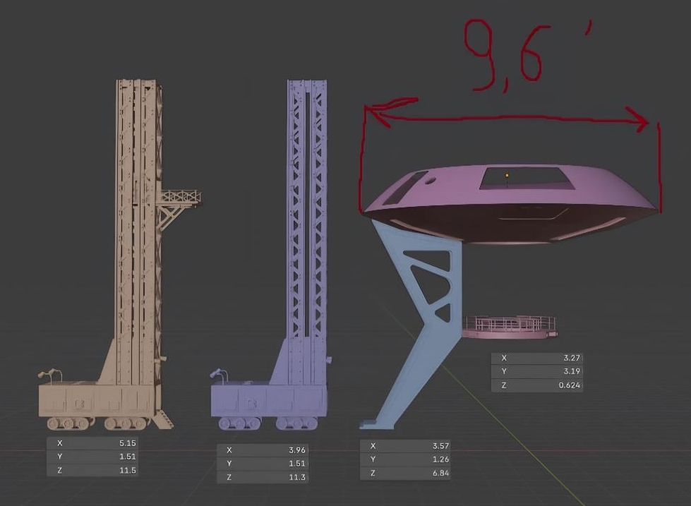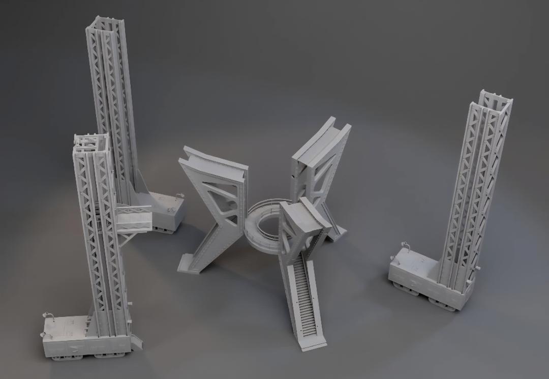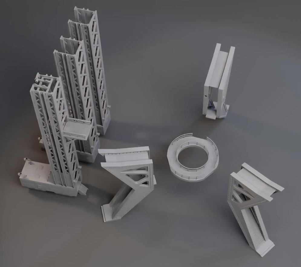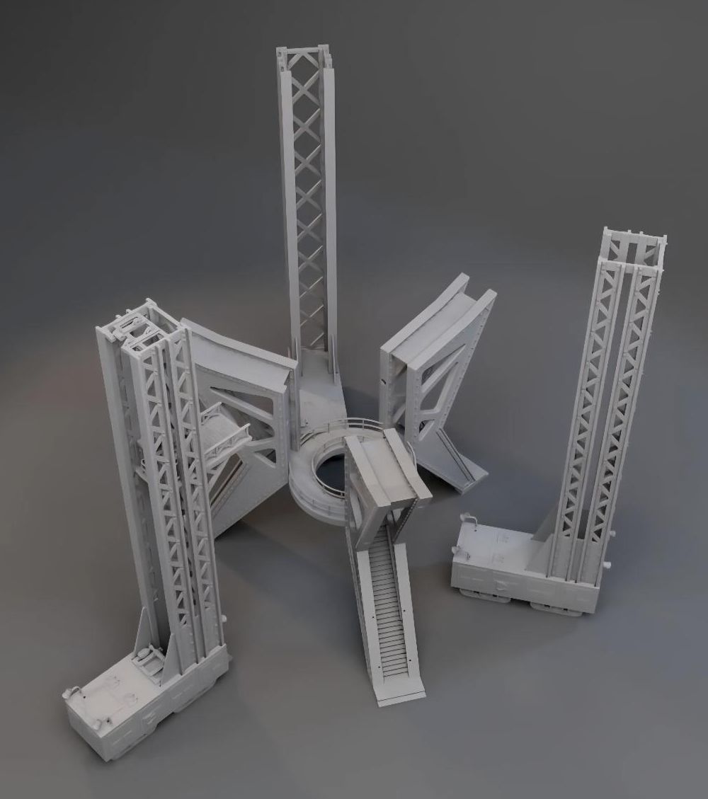 Lost in Space Launch Pad Gantry with 3 Scaffolds 3D Printed for the 12" Jupiter-2 Model. |