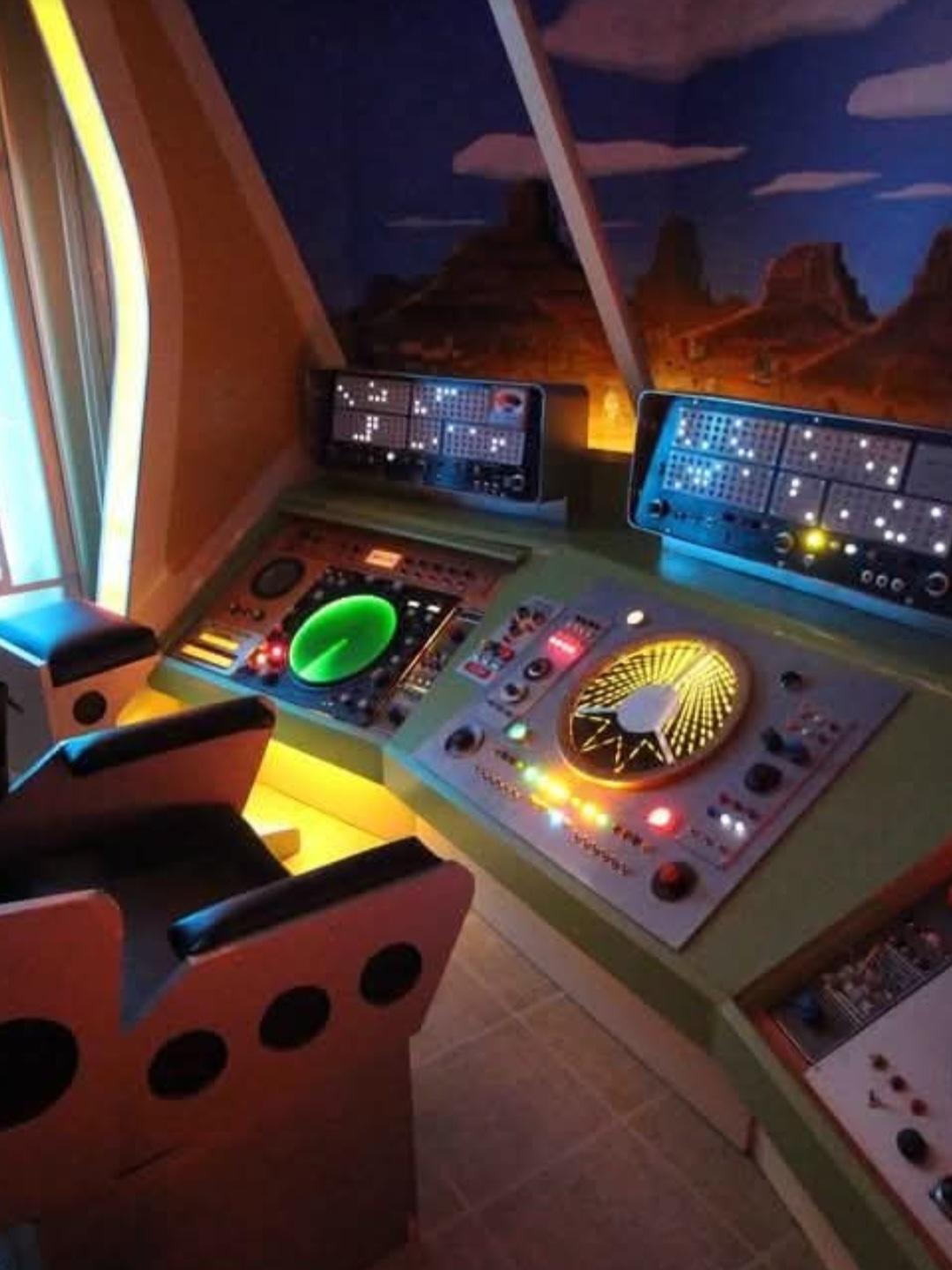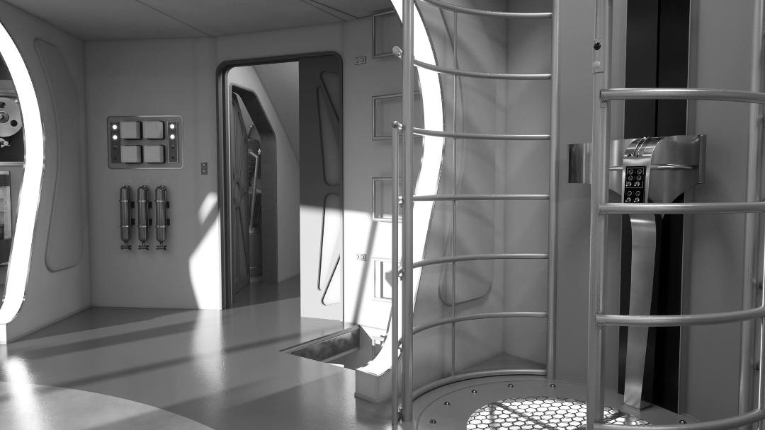 tubes capable of placing the six member crew into a state of suspended animation for the duration of their five and half year journey. It also contains storage lockers, a communications system, and cabin pressure control. Located at the center of the upper deck is the astrogator. The astrogator is commonly seen replaced by a table and chairs when on a planet, as it is not required when not in flight. An electronic glide tube elevator and  fixed ladder are used to connect both decks. In the third season, one of the storage rooms is seen to house a staircase leading to the lower deck, and other parts of the ship. The space pod was also added