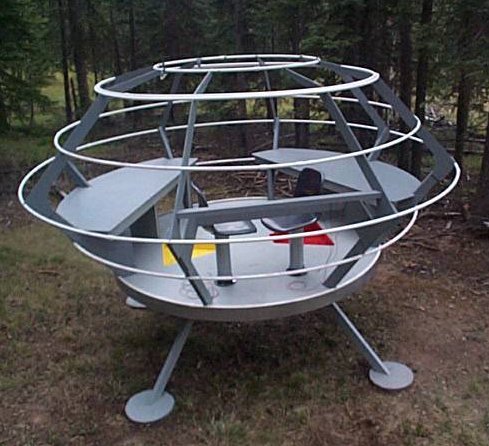On July 26, 2005 we received an e-mail from the LIS Props Yahoo group. Attached was a link to a "Jupiter-2 Playhouse". I have seen many fantastic fan-made items over the years here on the internet. But this folks beats all previous in counters. Mike Joyce at B9Creations.com and his family had a fun project building a Jupiter-2 Playhouse. As you can see by the many photos, they had a ball making this replica J-2. Does it fly? Not yet, and there far from finish with this too. Fusion core lights will be added, and even Mrs. Joyce will be making silver spacesuits for the entire family for there mission into deep space.