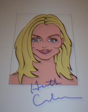 Heather Graham "Austin Powers" autograph hand-signed cartoon. This authentic 8.5 x 11 item is not a pre-print. It is an extremely unique art print ( Drawn by Marshall Jay Kaplan ) that was hand-signed by the celebrity illustrated!!Value: $200.