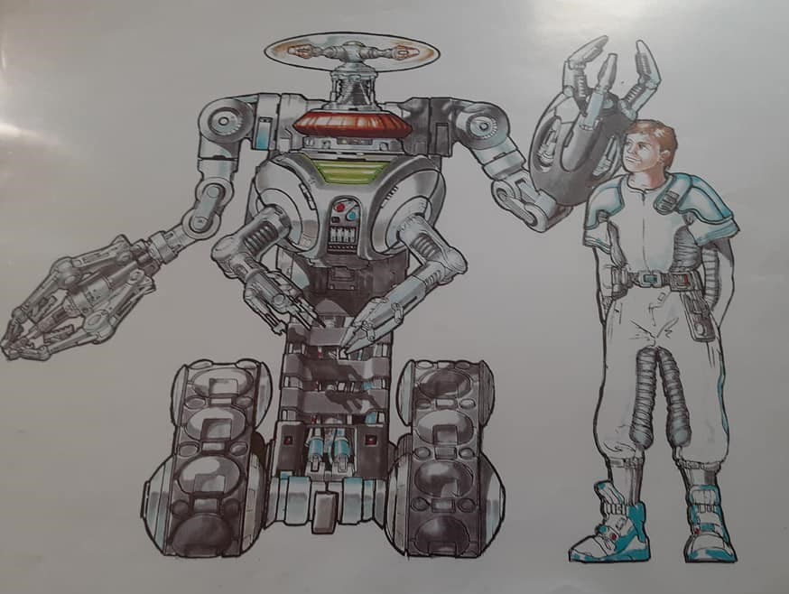 These are artists renderings of the Jupiter-2 bridge set and both Robots from the Lost in Space movie created before the huge sets and props were built. Drawings like these gave the set designers a general idea of what they would be up against when construction finally begun.