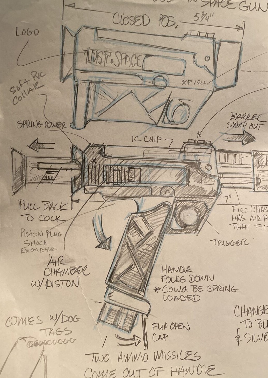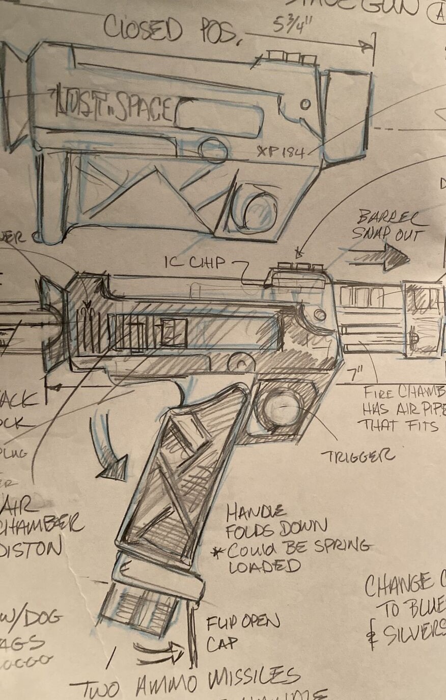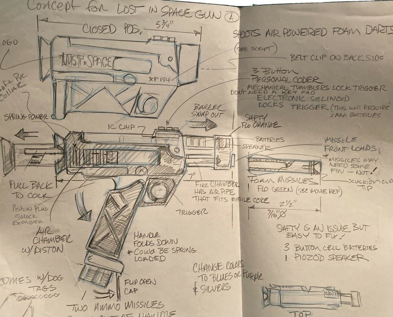 LOST IN SPACE MOVIE ORIGINAL PROTOTYPE SPACE BLASTER DRAWING