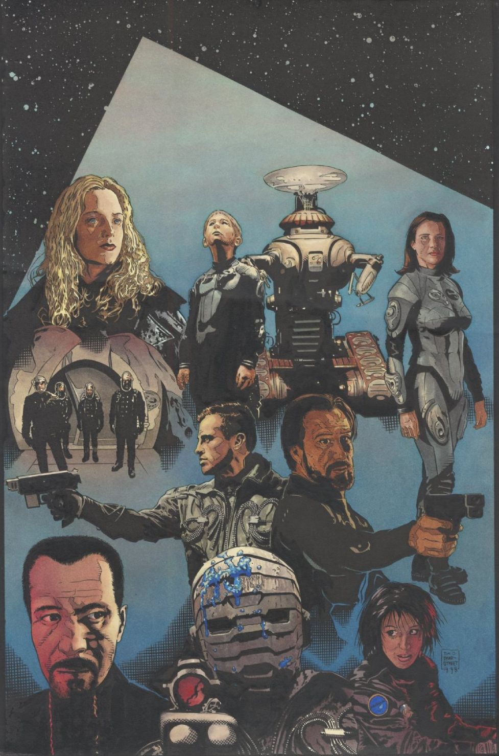 This is the original published watercolor cover art to the Lost in Space Trade Paperback Cover. This is the first time that this vintage Tim Bradstreet art has ever been available for sale. The original art measures 10 1/2 x 16 1/4" on comic art board.